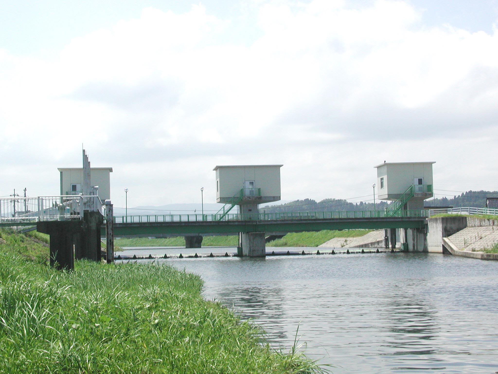 十二町潟潮止水門は、国営総合灌漑排水事業の一環として十二町潟排水機場の一部として建設されました。