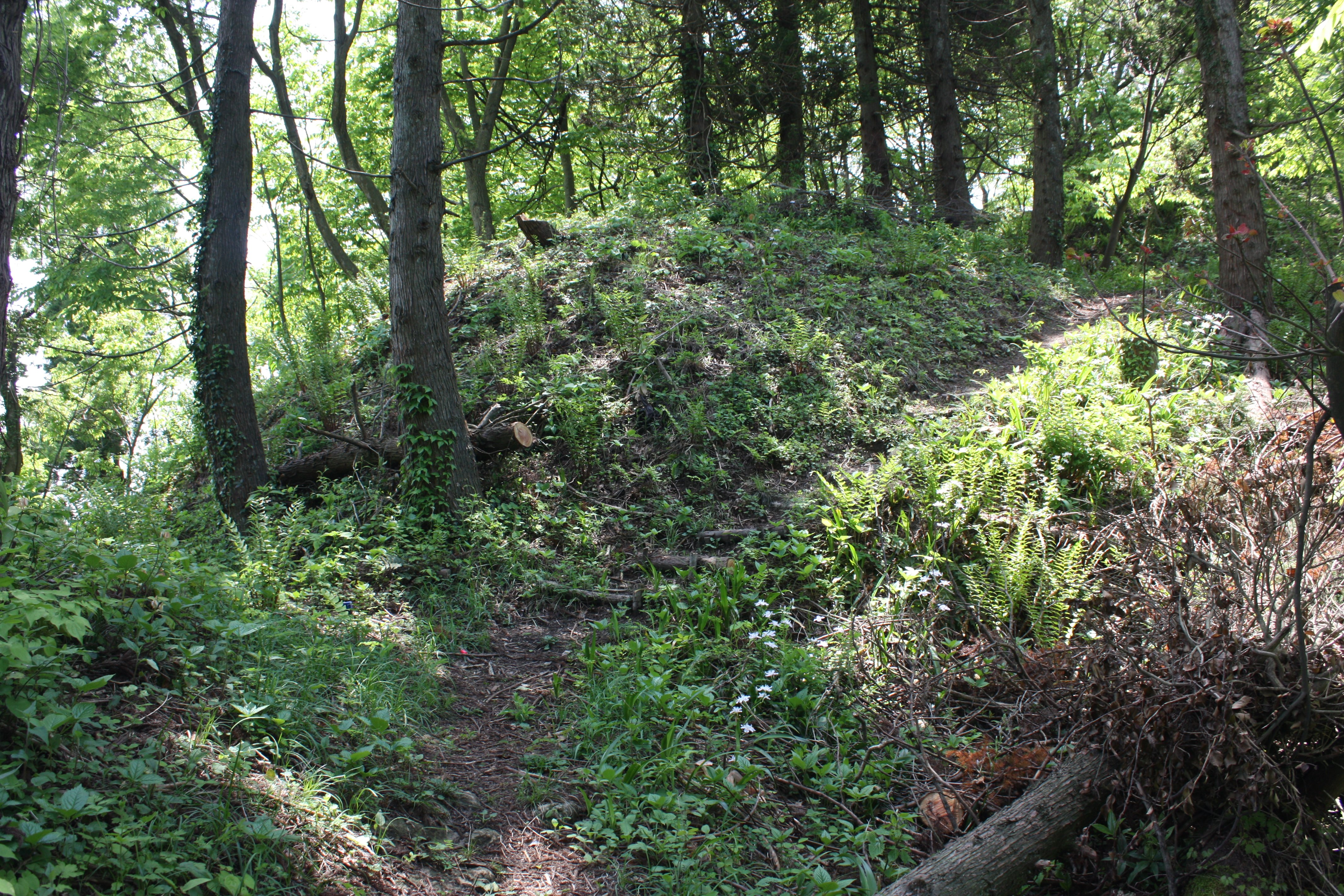 | 土塁があり通路が曲げられています |