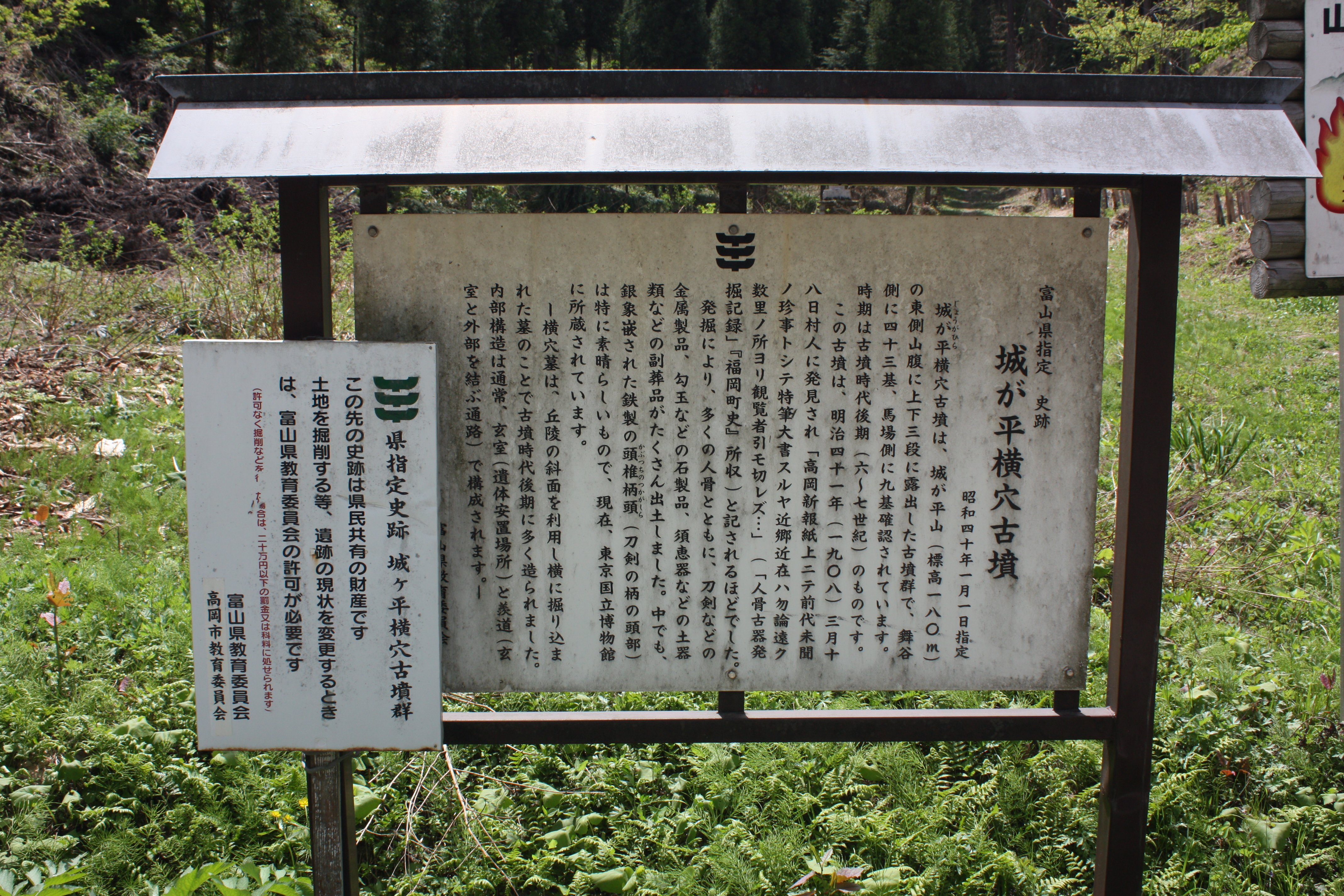 | 城ヶ平横穴古墳を示す標識 |