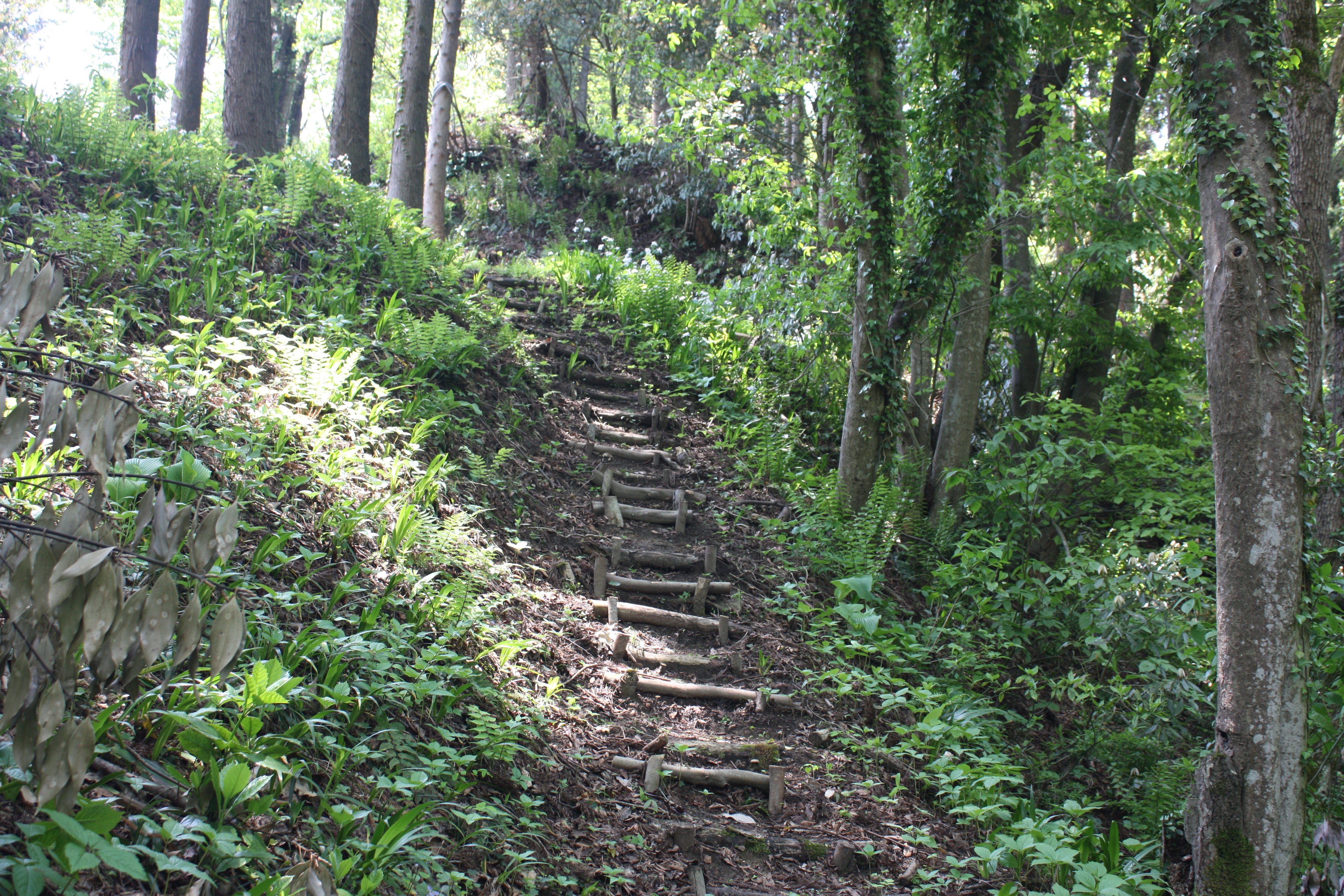 | 狭く急な登城道を登っていきます |