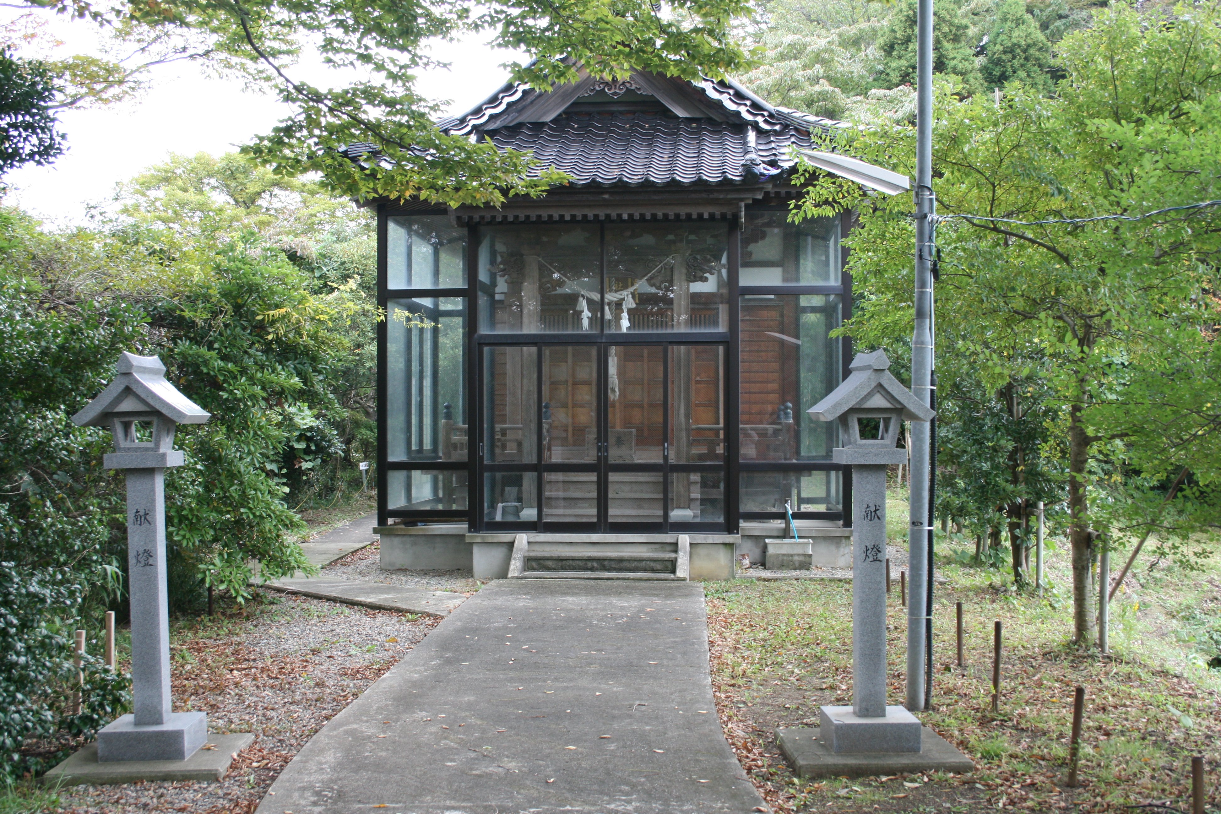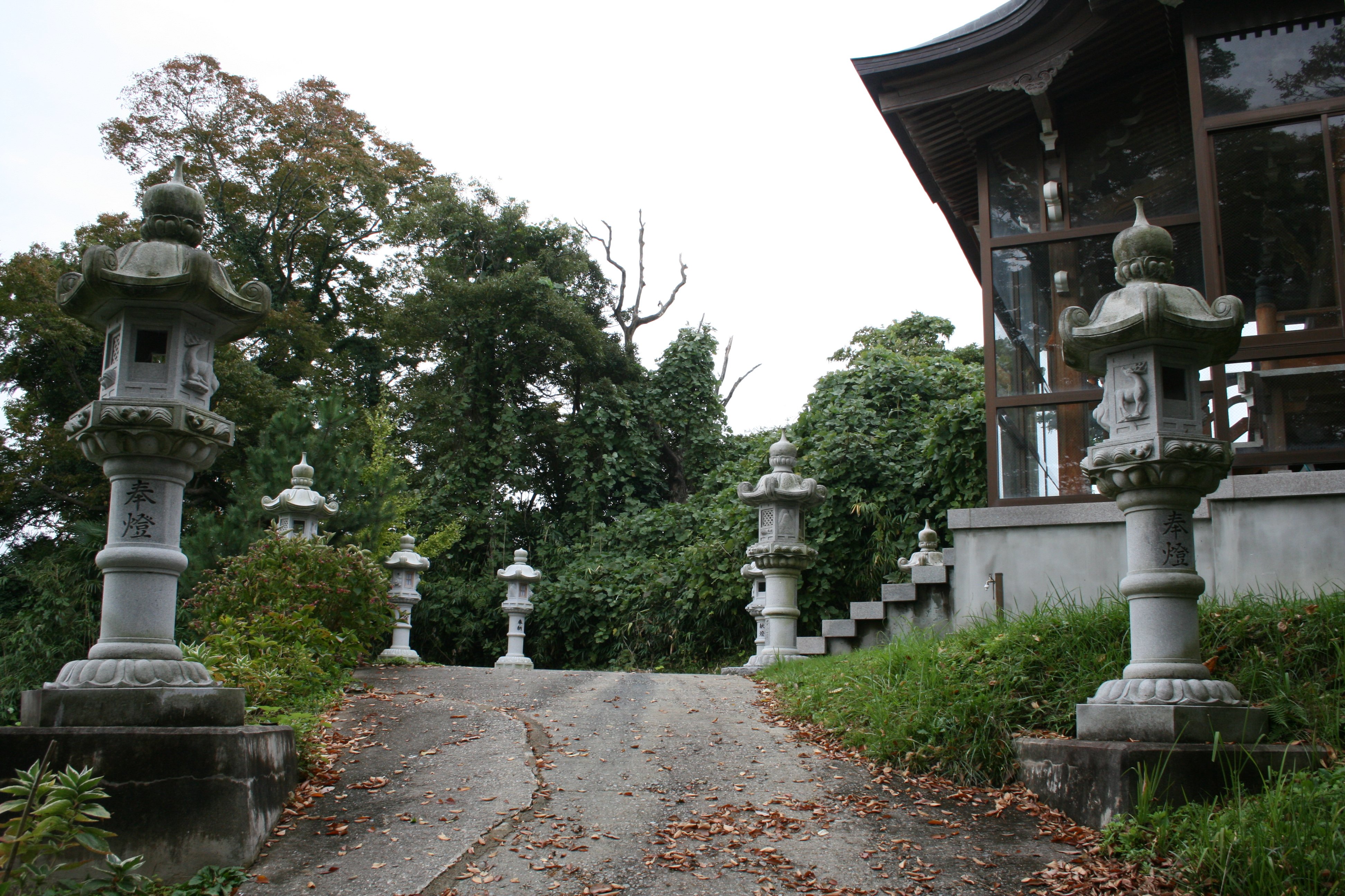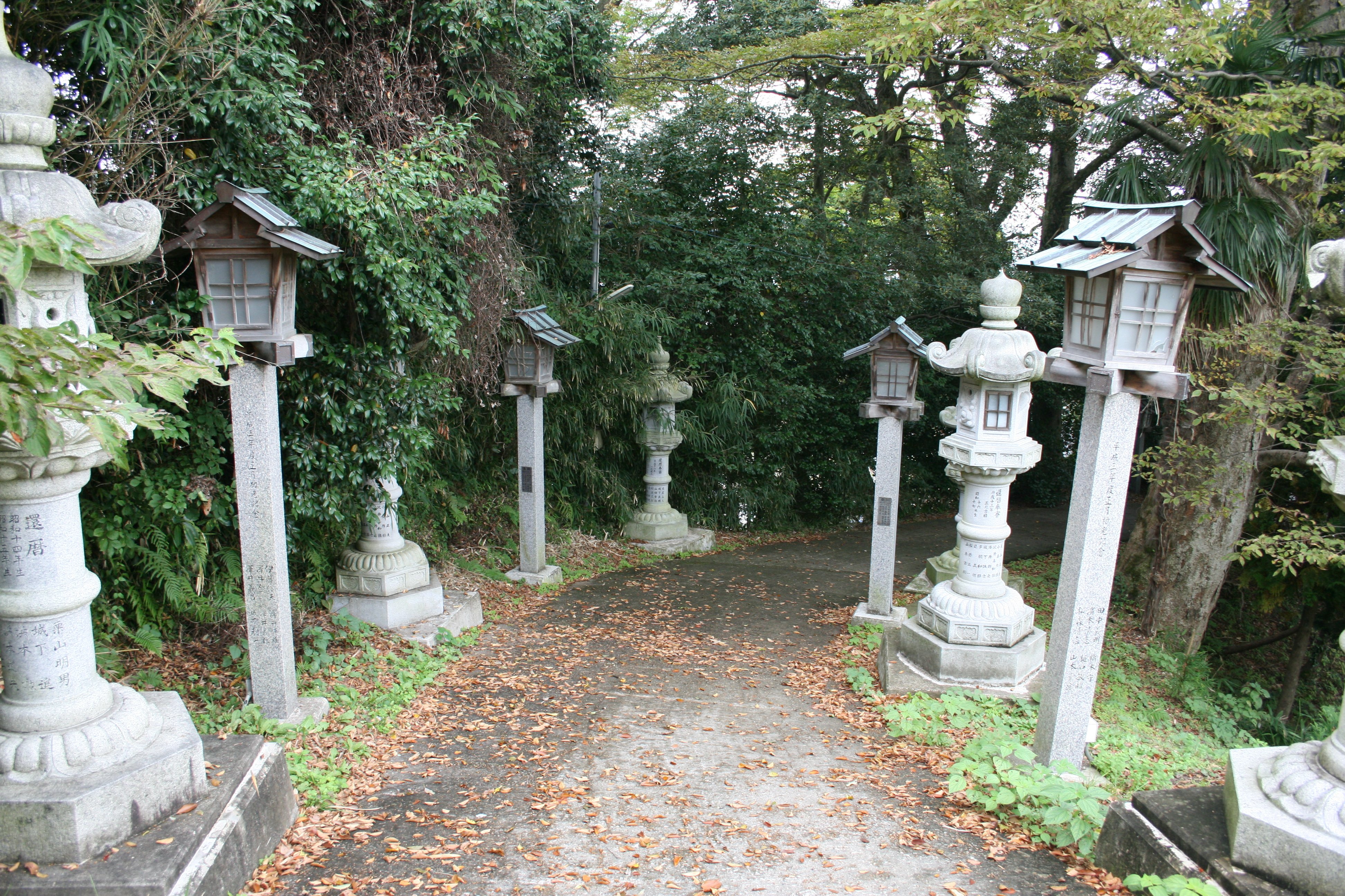 | 三の丸から榊葉乎布神社への通路には灯籠が |