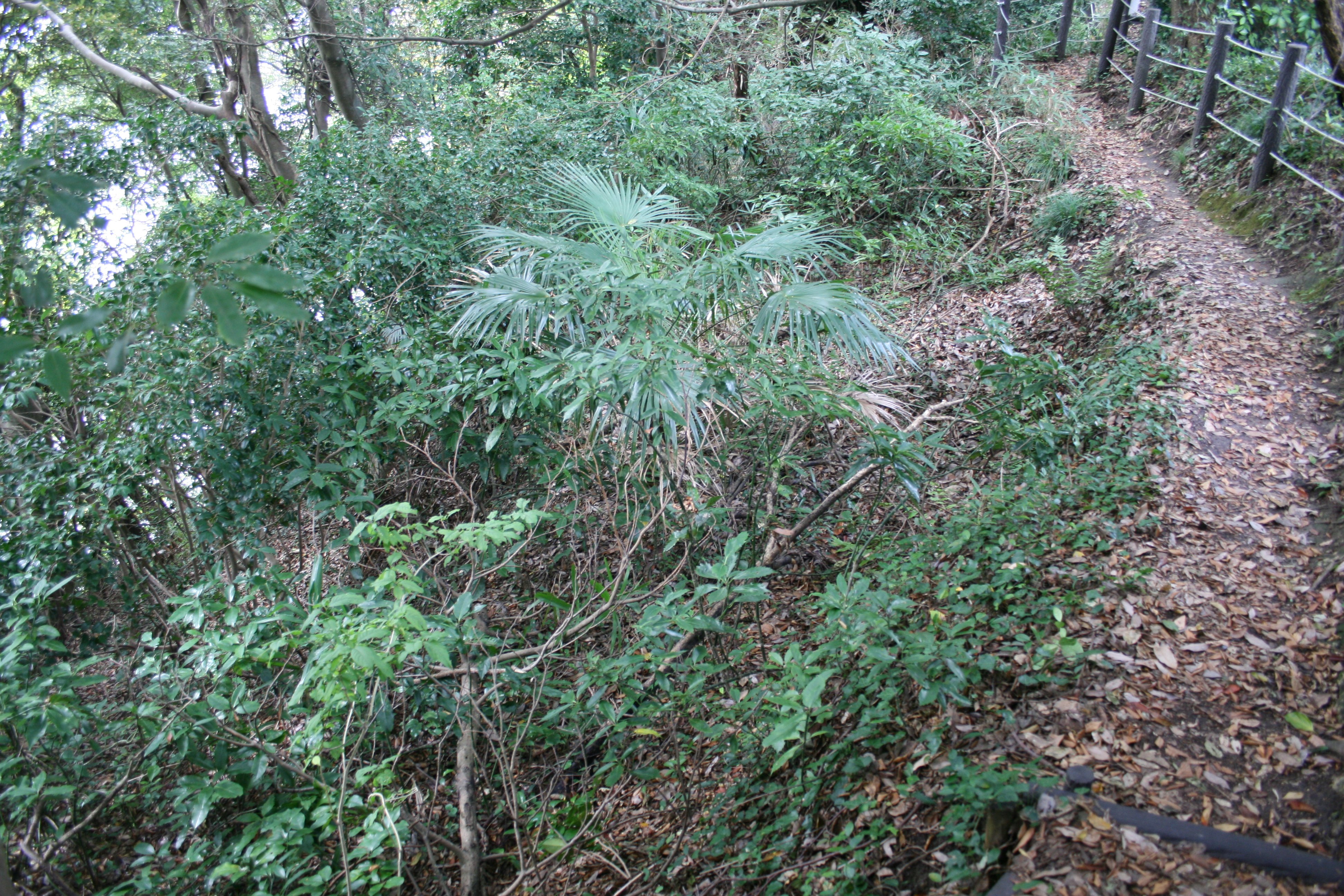 土橋状の通路のそばは深い崖 |