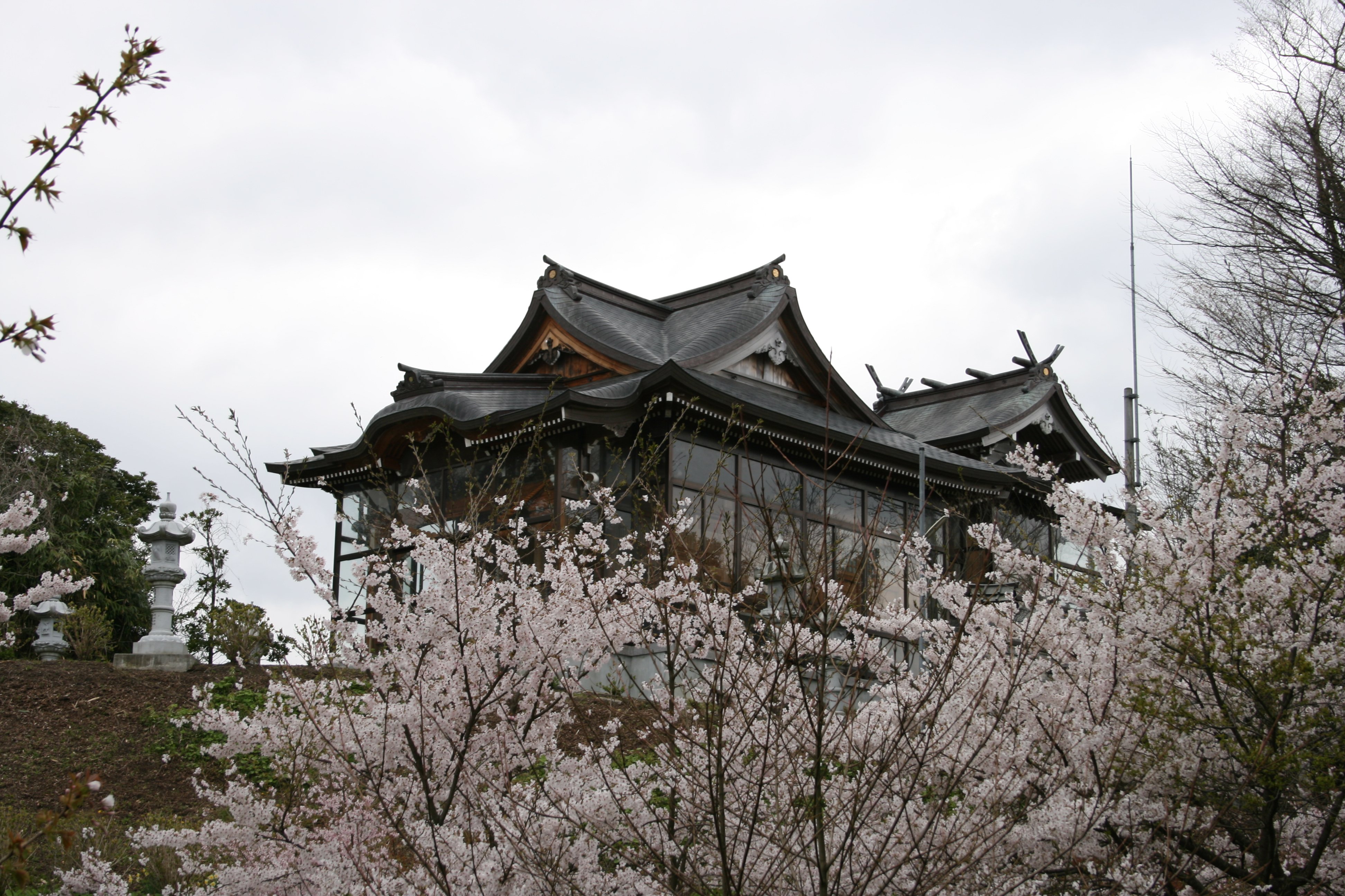 | 桜に包まれた榊葉乎布神社 |