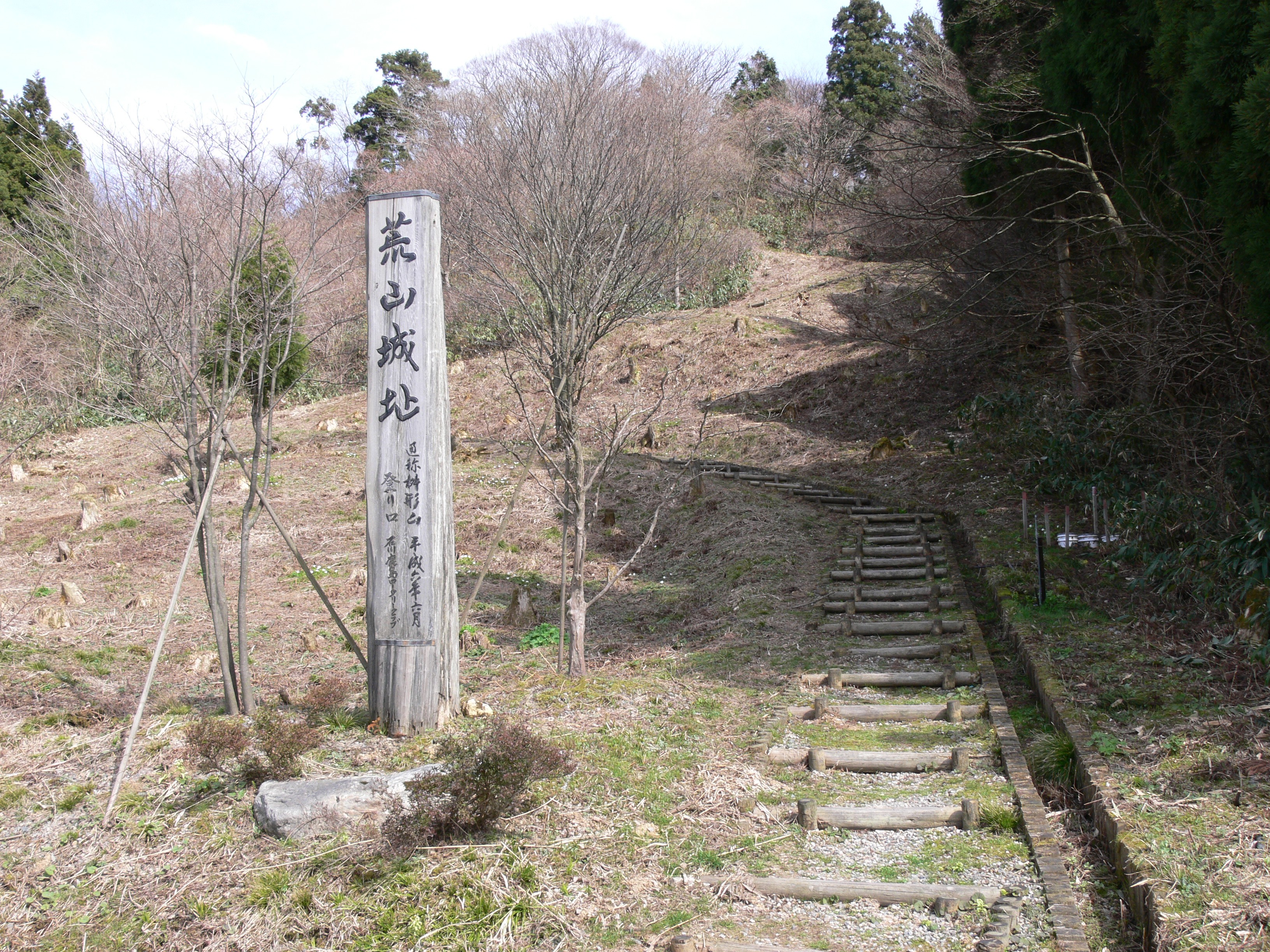 天正5年(1577年)の上杉謙信の能登侵攻の際、この荒山砦には能登守護畠山氏が入っています。天正10年(1582年)、本能寺の変で織田信長が没したのを機に、石動山衆徒は越後の上杉景勝に支援を求め、上杉氏に保護されていた畠山氏遺臣である温井備中守景隆と三宅備後守長盛の両氏が派遣され、6月23日の夜半にはこの荒山砦に入って、要害を築き始めています。