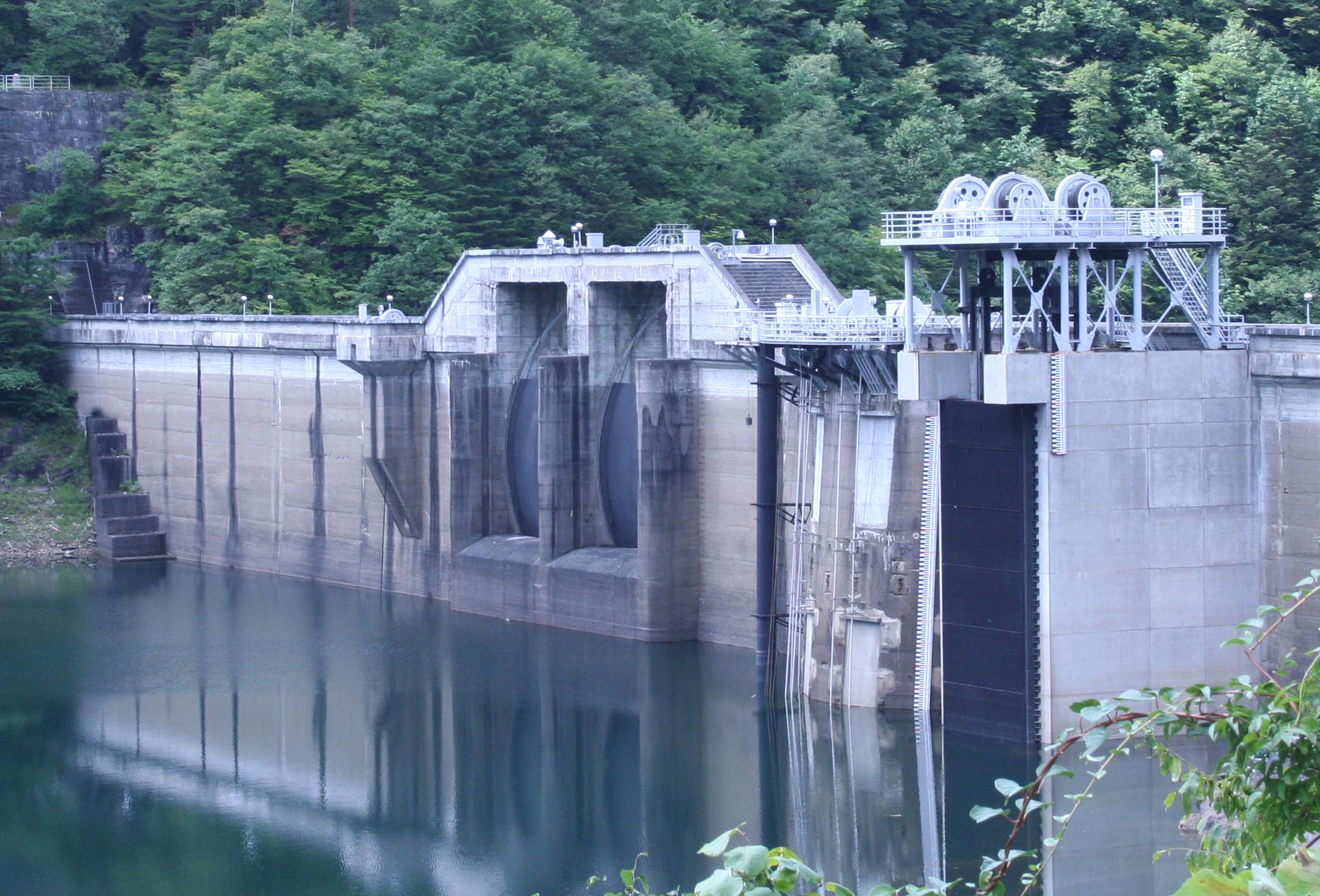 上流側から見たラジアルゲートと選択取水設備 |