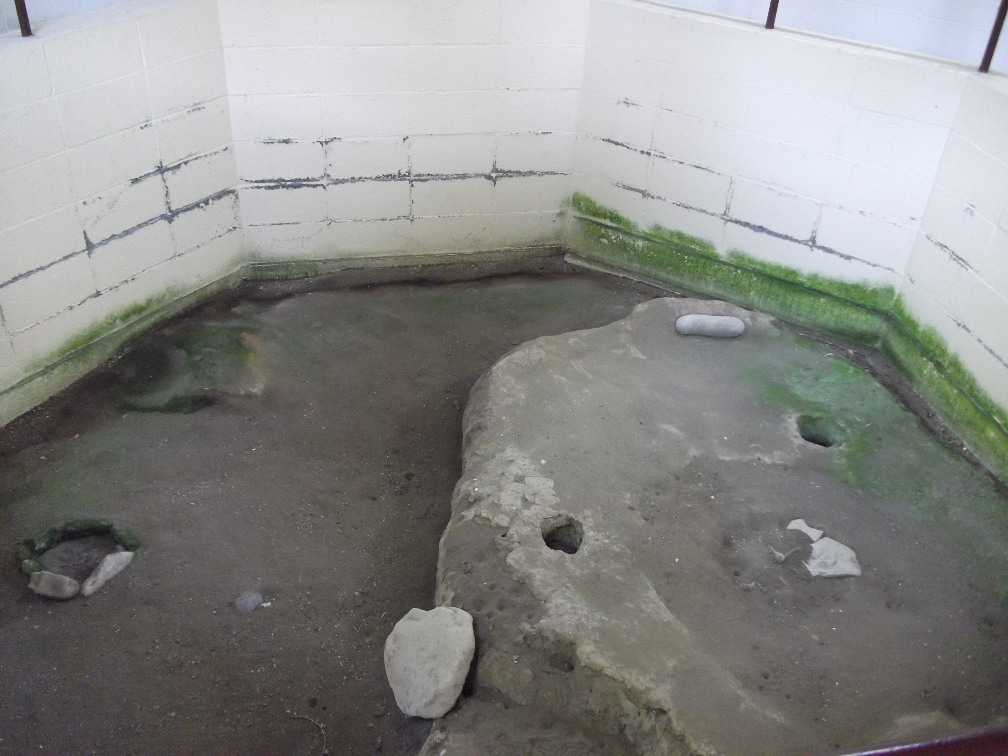 現在では、住居跡には保存舎が建てられ見学することができます。保存舎のある場所からは、貝類を主体とした貝層が2層が発見されています。