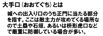 例外として、堺、博多などの商業都市、石山本願寺、小田原城、大坂城、江戸城などは市街地までを堀や城壁で囲む総構えが建設されています。それも城壁で市街地を完全に囲むまでには至っていないのが実情です。この中でも江戸城は、現代の千代田区の大半を占める広大な範囲での総構えが構築されていて、日本最大の城郭都市と言うことができましょう。しかし、このような大規模な総構えを持つ城郭は、江戸時代においてもごく少数でした。さらに比較的大規模な総構えを持つ城であっても、水堀と石垣で囲むくらいがせいぜいのところでした。
