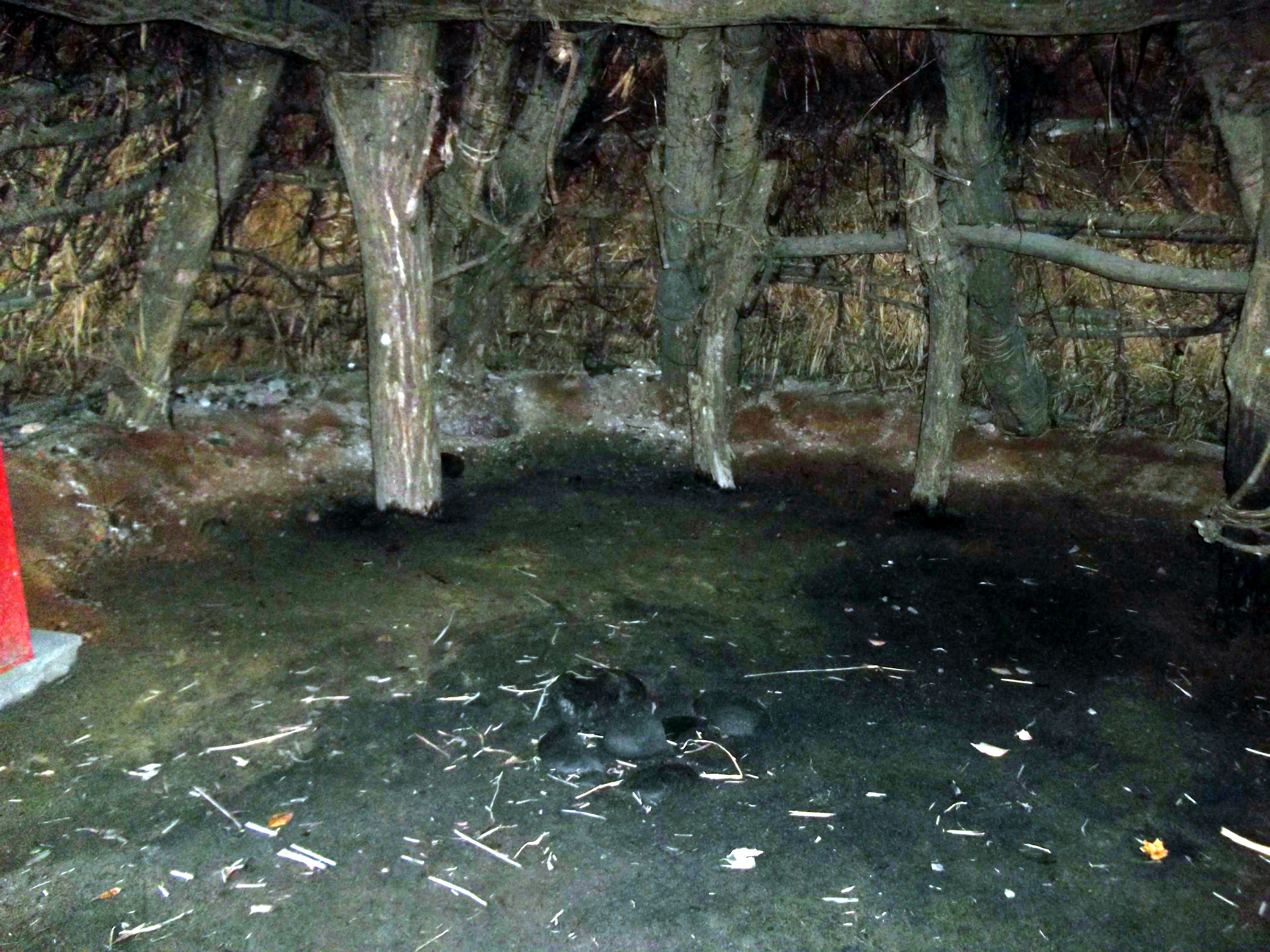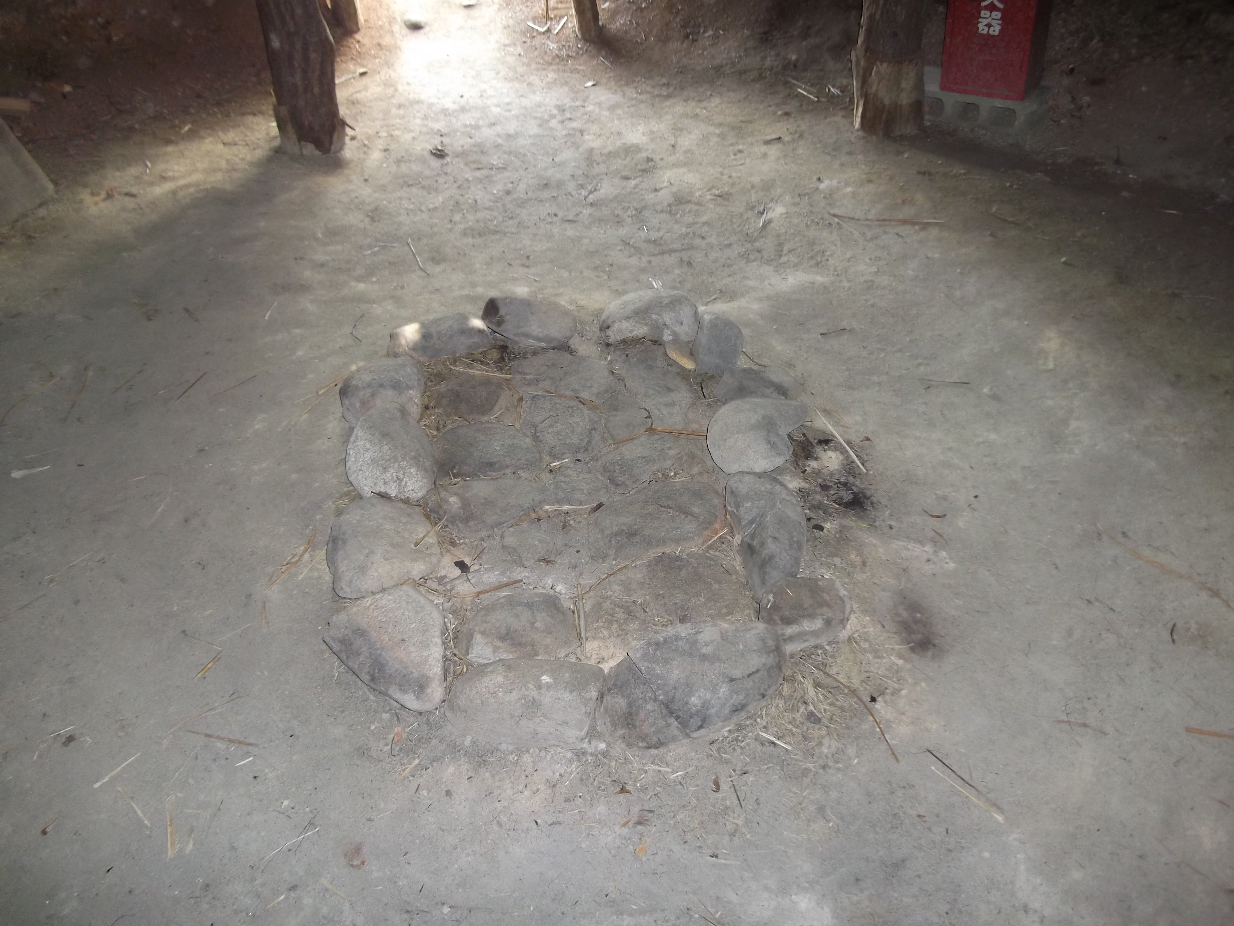床面中央には、4基の石囲い炉が長軸線上に規則正しく配置され、このうち東方の2基は方形、西方の2基は円形です。