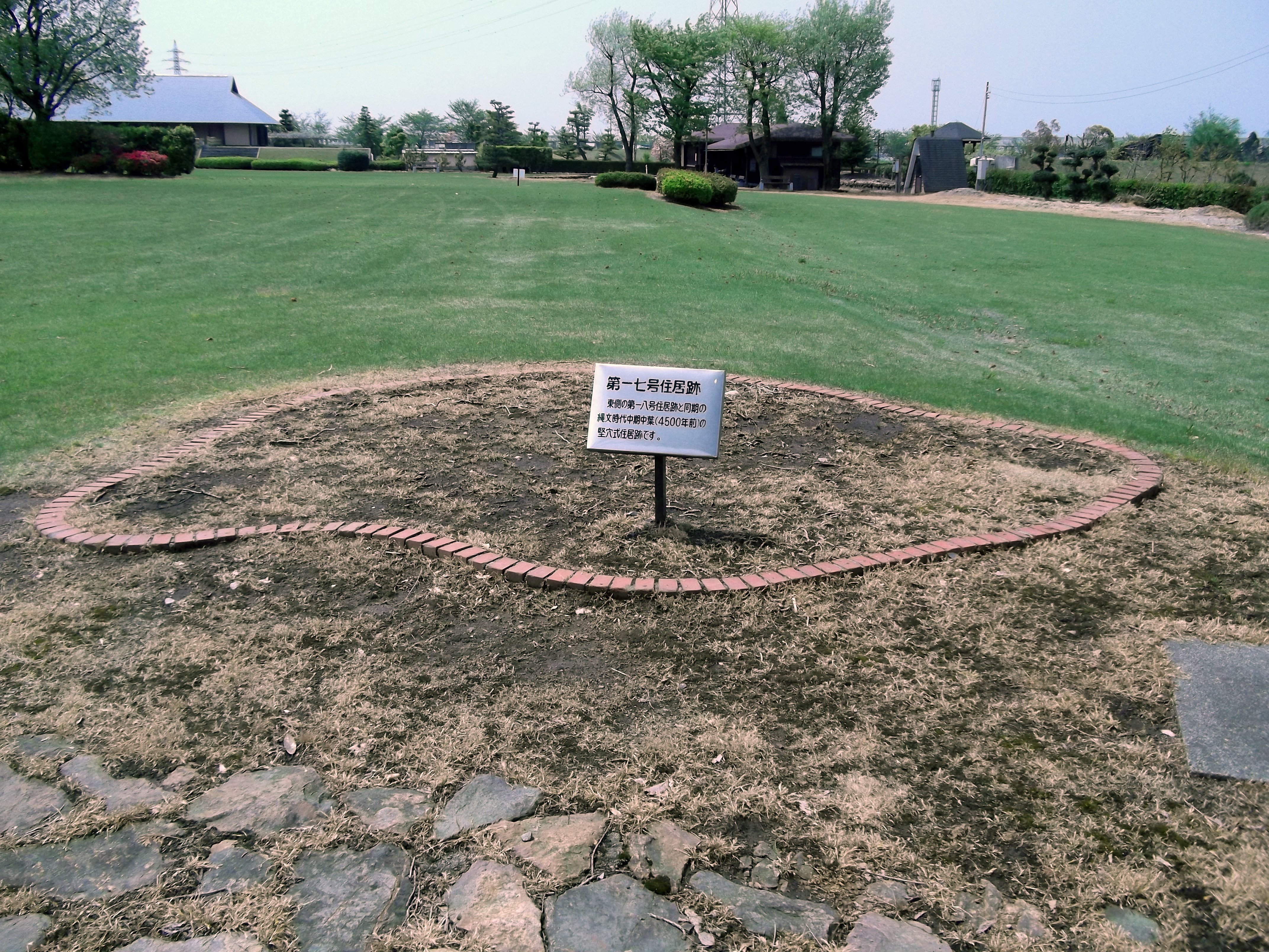 特に遺跡の中央部では、長径約17メートル、短径約8メートル、深さ20センチの東西に長い楕円形を呈する大形竪穴遺構があり、当時としては国内最大の竪穴住居跡として注目されています。
