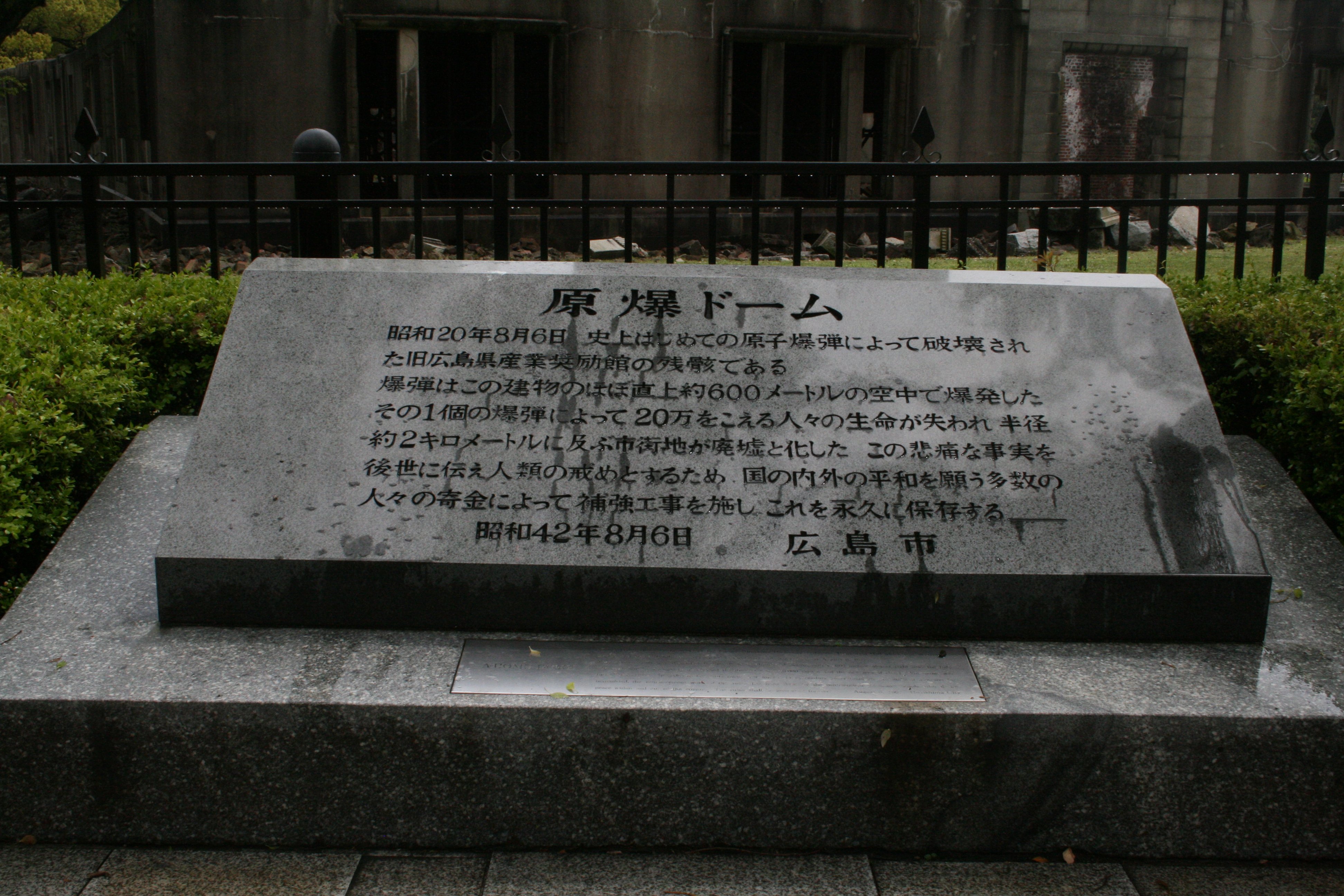 | 原爆ドームの永久保存を宣言した石碑 |