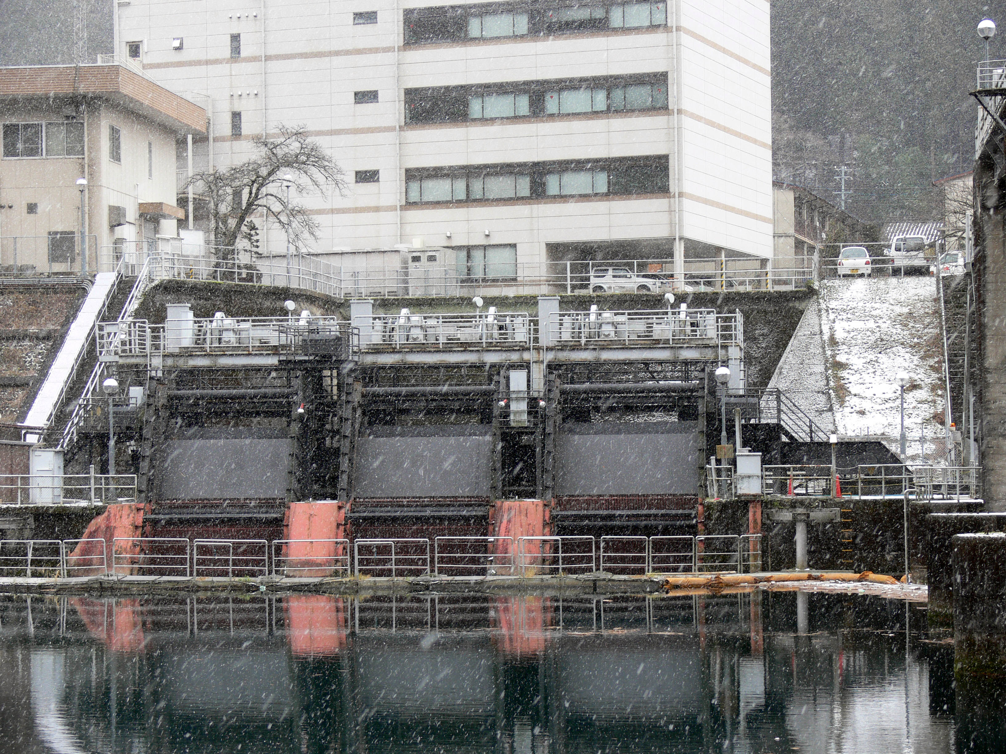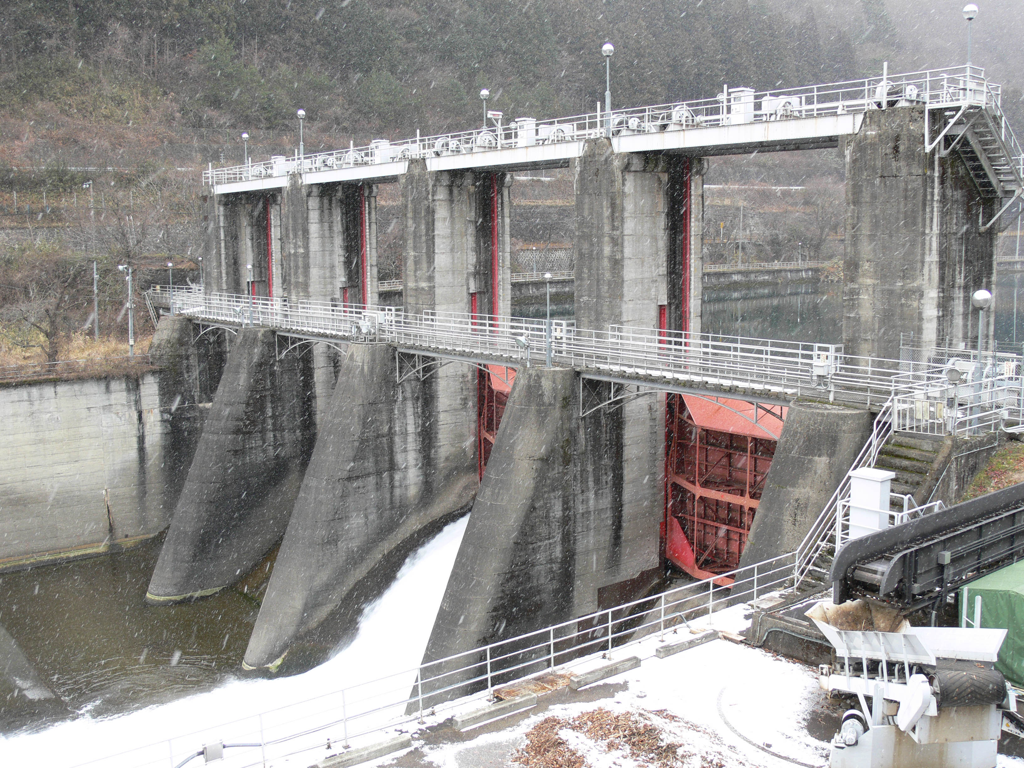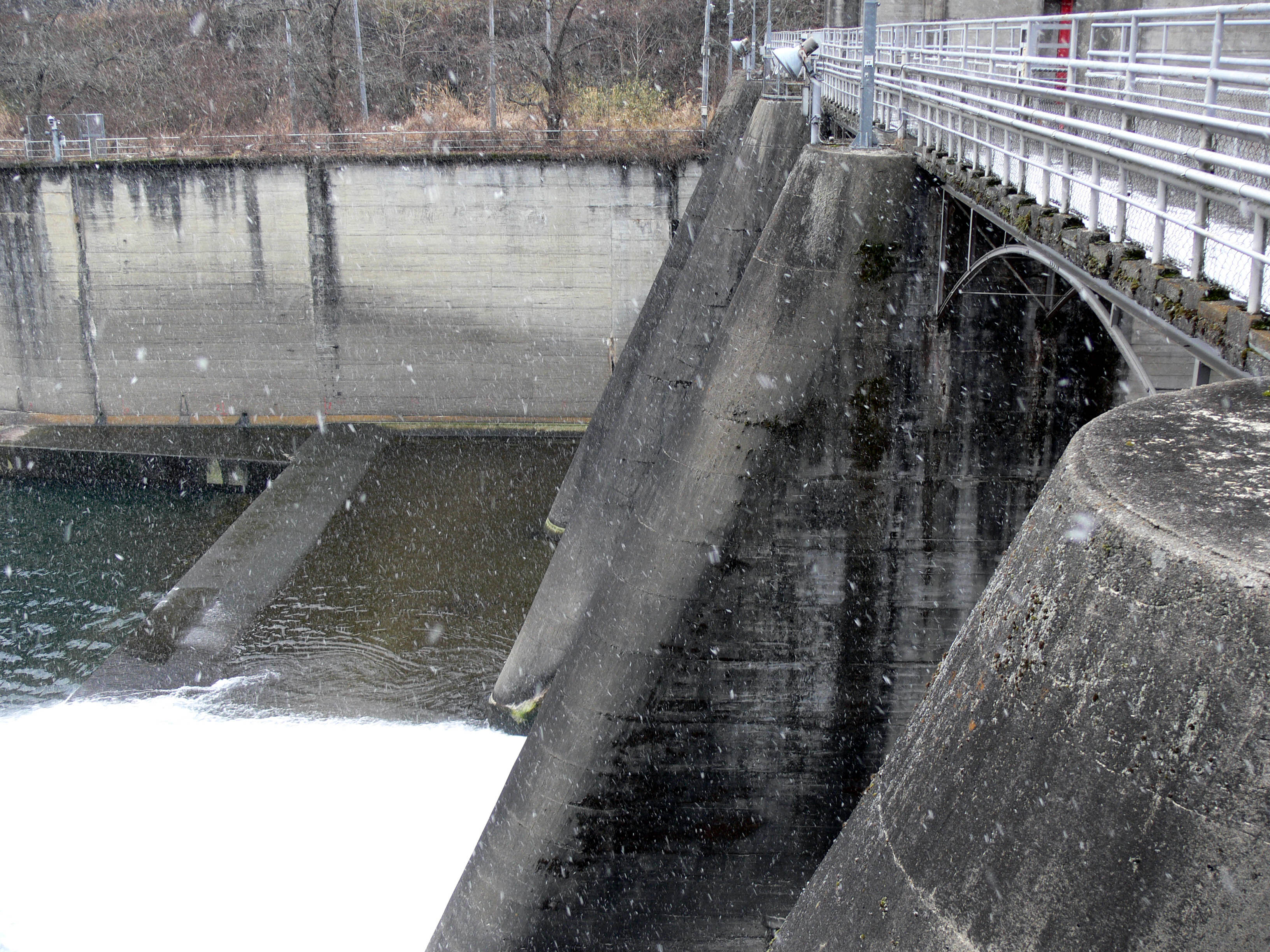 このダムから東上田水力発電所に送水し最大出力35,000kwの発電を行っています。