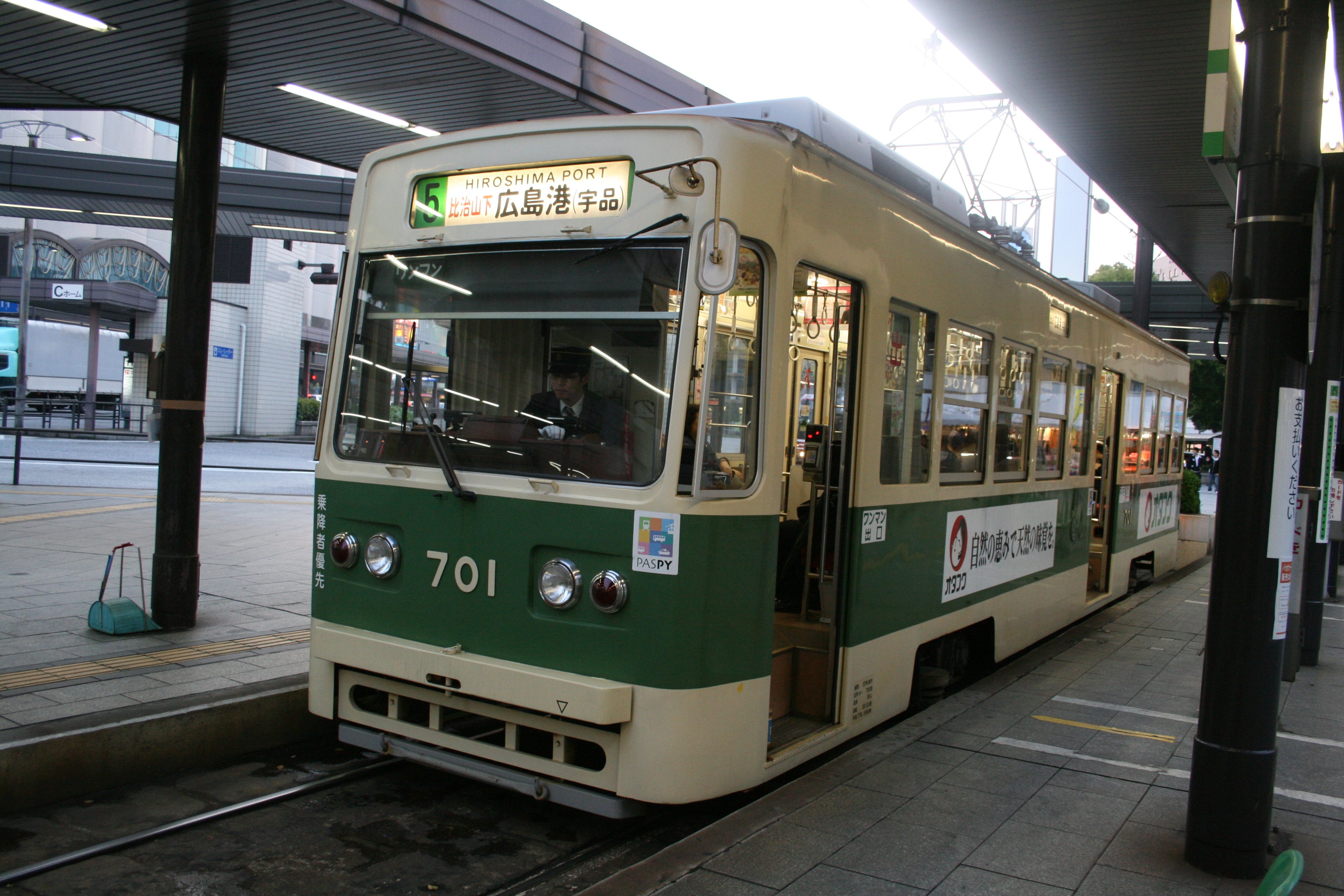 さて、広島港(宇品)行きの電車に乗ります。この系統は1号線と呼ばれています。