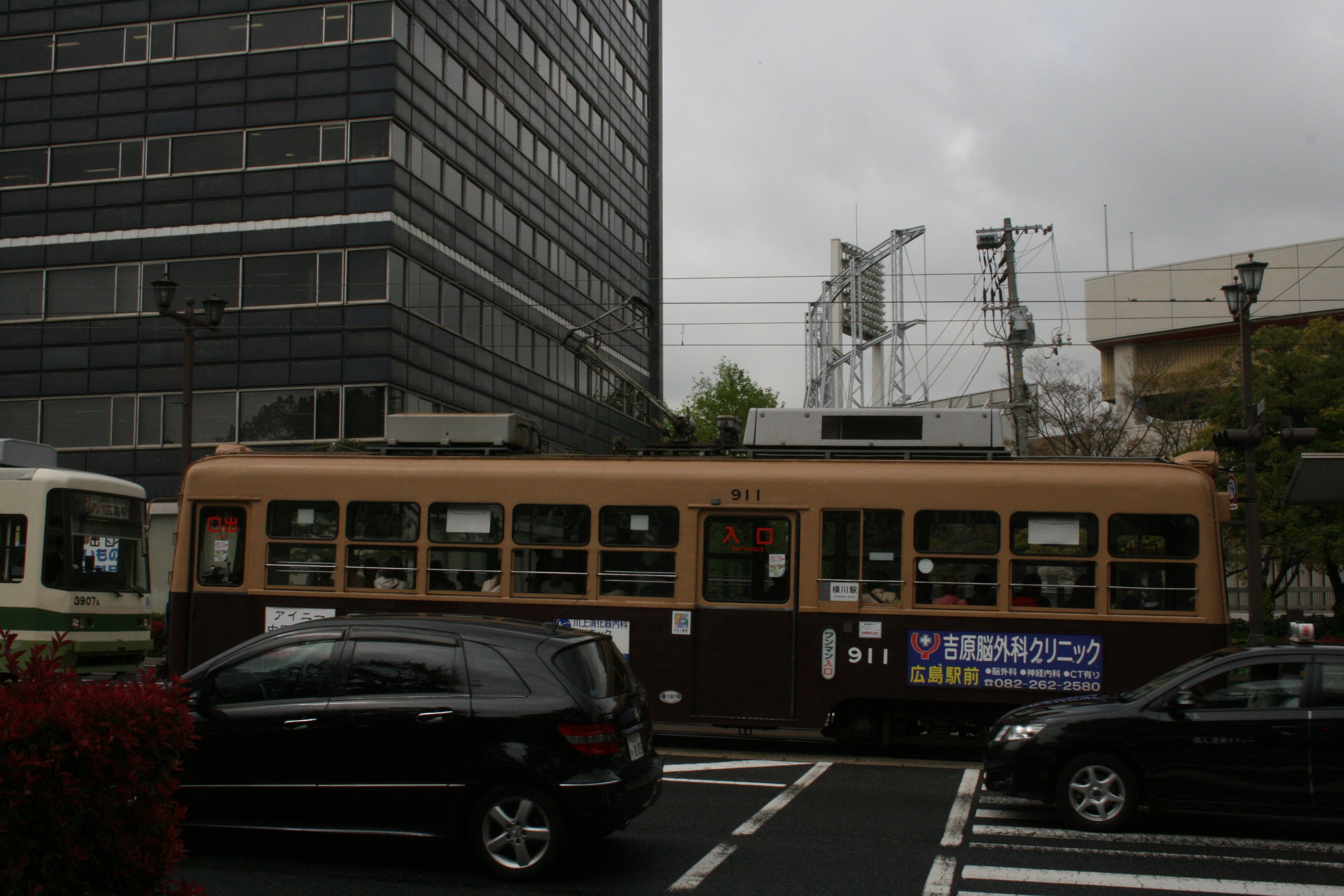 まず、広島電鉄市内線は乗客数が多く、列車本数も多いので運行上もたいへんに混雑していると言えます。線路をよく観察しているとホームに電車が入線しているところに後続の電車が到着して電車が並んでしまうことがあり、運行速度もあまり速くはないようです。まあ、市内線は運行速度よりも利便性の方が重視されるでしょうから、これはこれでやむを得ないところでしょう。