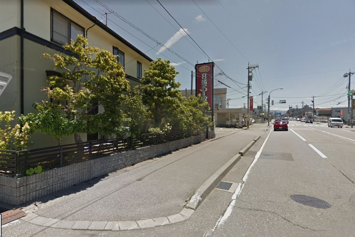 廃止後は、駅跡と線路跡が金石街道の拡幅用地となっていて、痕跡がなくなっていて位置は判然としません。 |