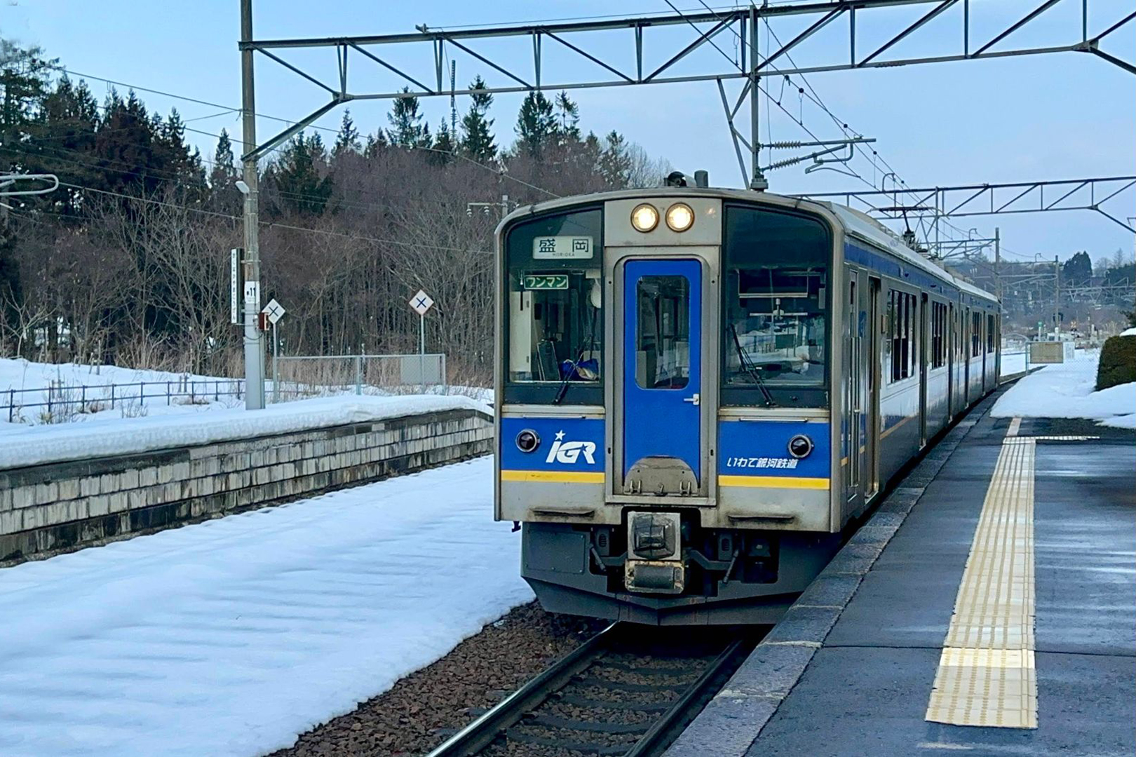 東北本線と直通運転する電車列車(IGR7000系・JR東日本701系を使用)については、盛岡駅で乗務員が交代している。