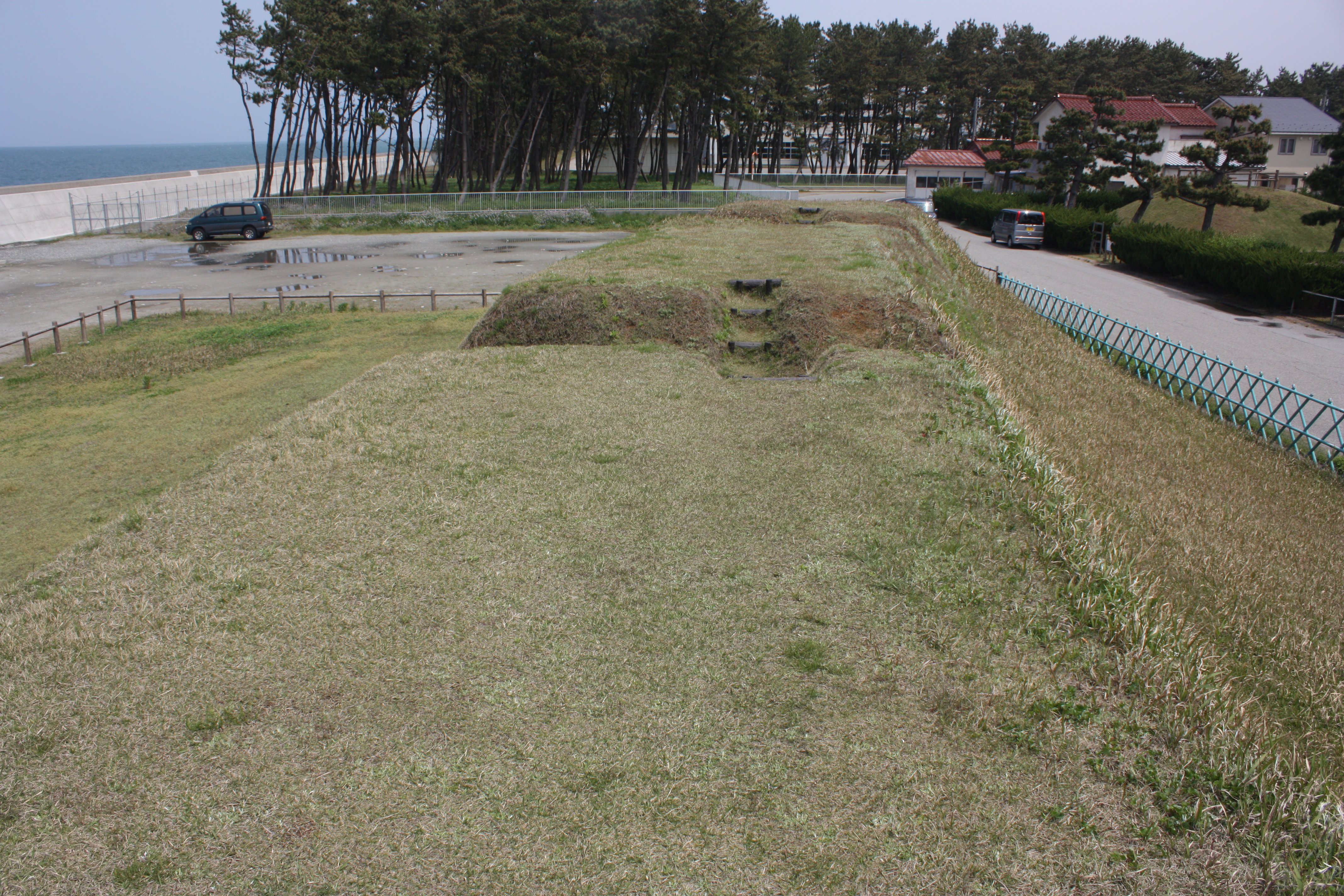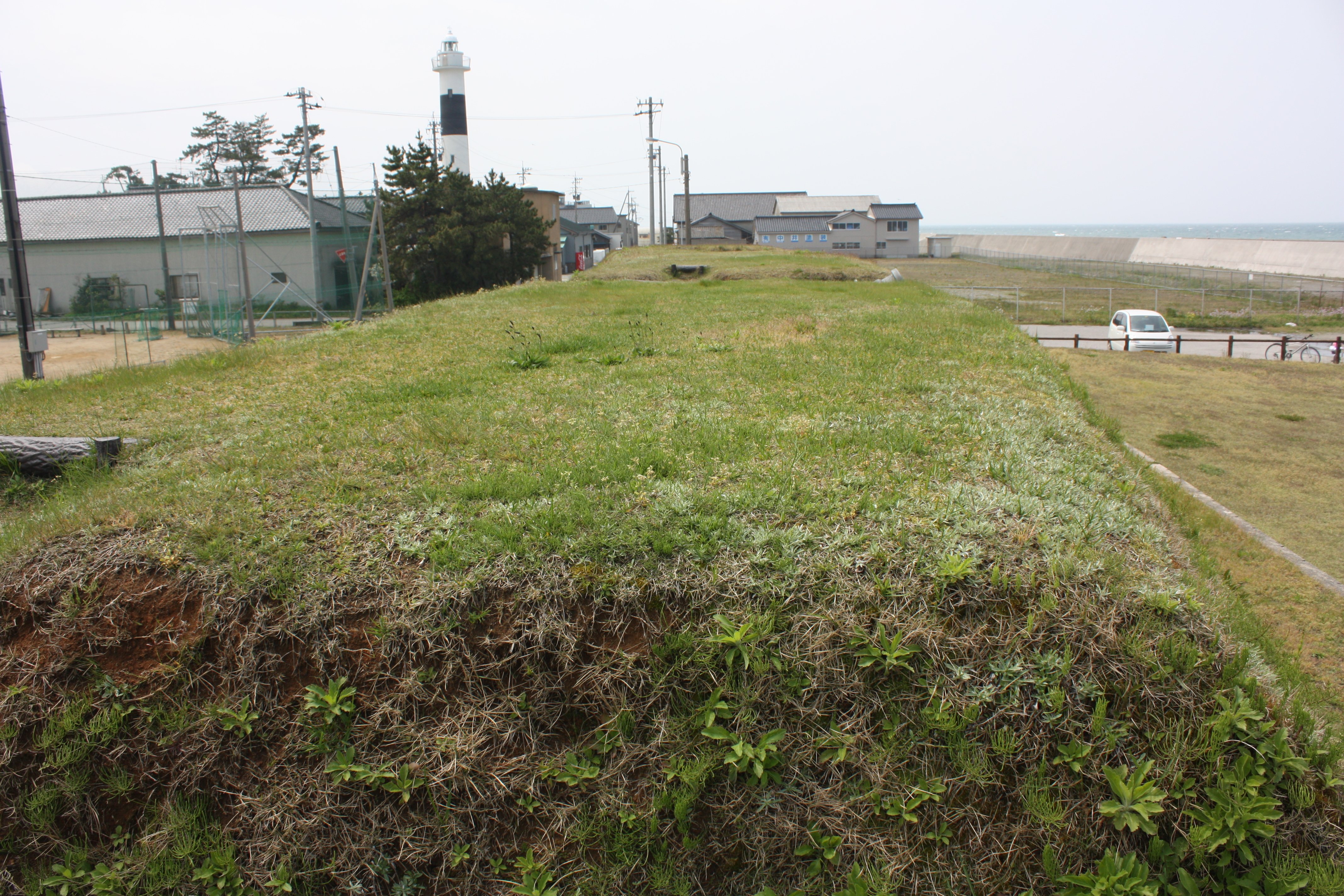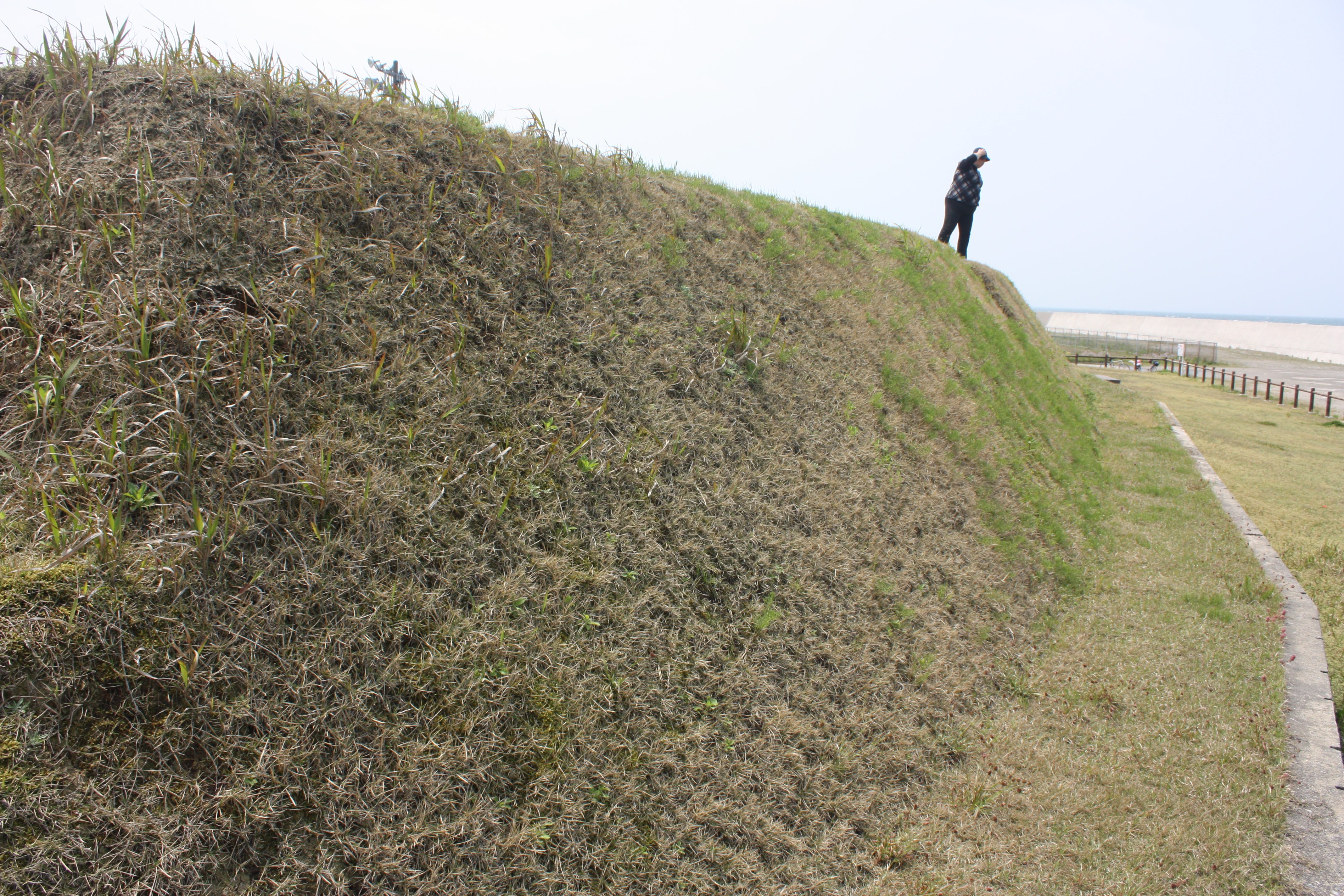 | 土塁の陸側は勾配が緩やかです |