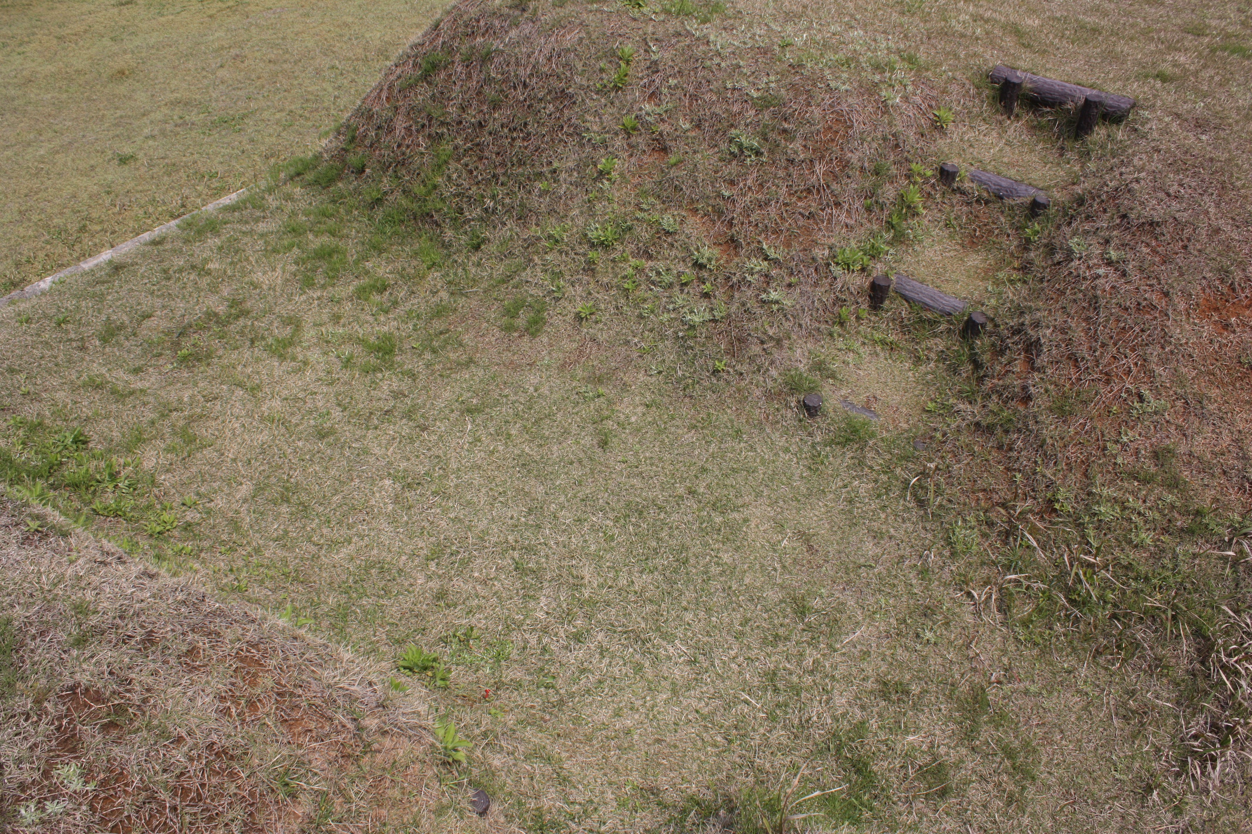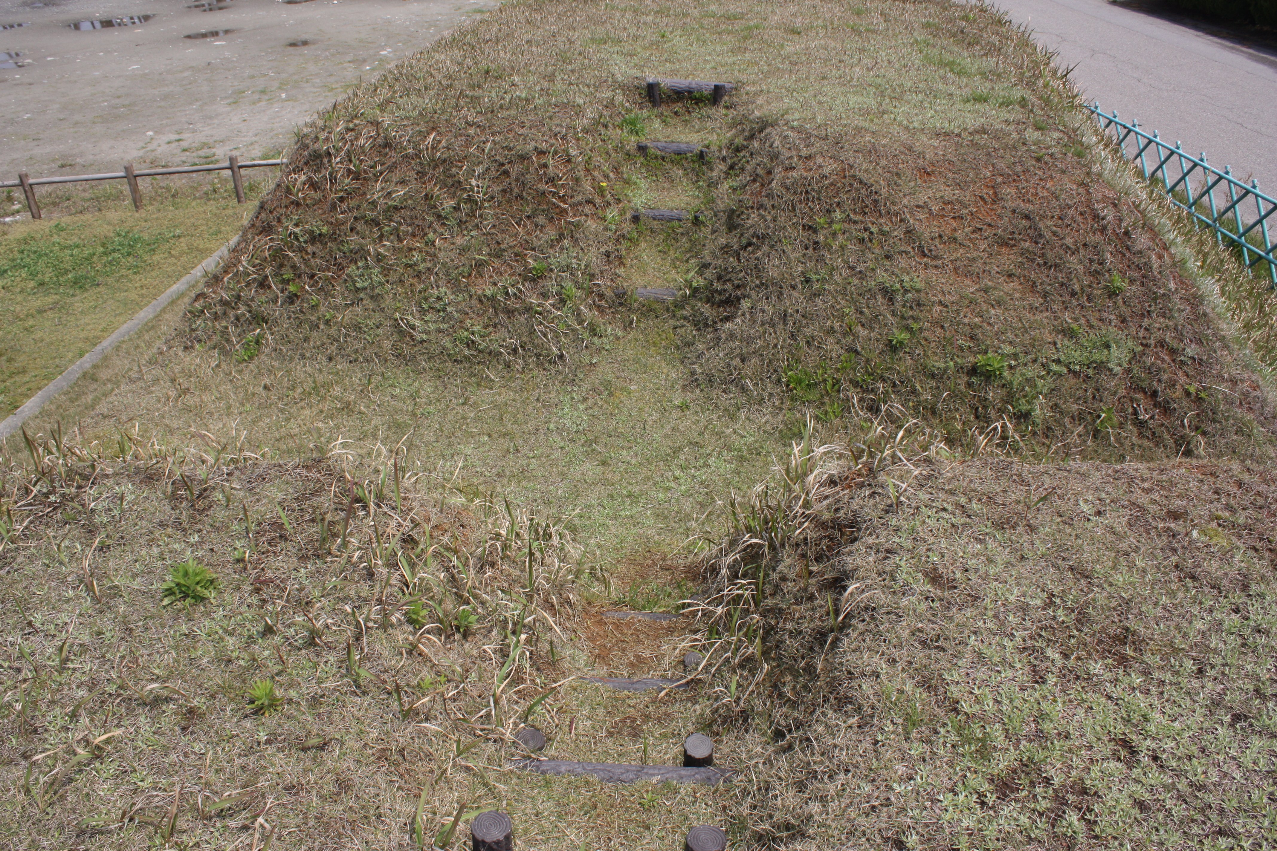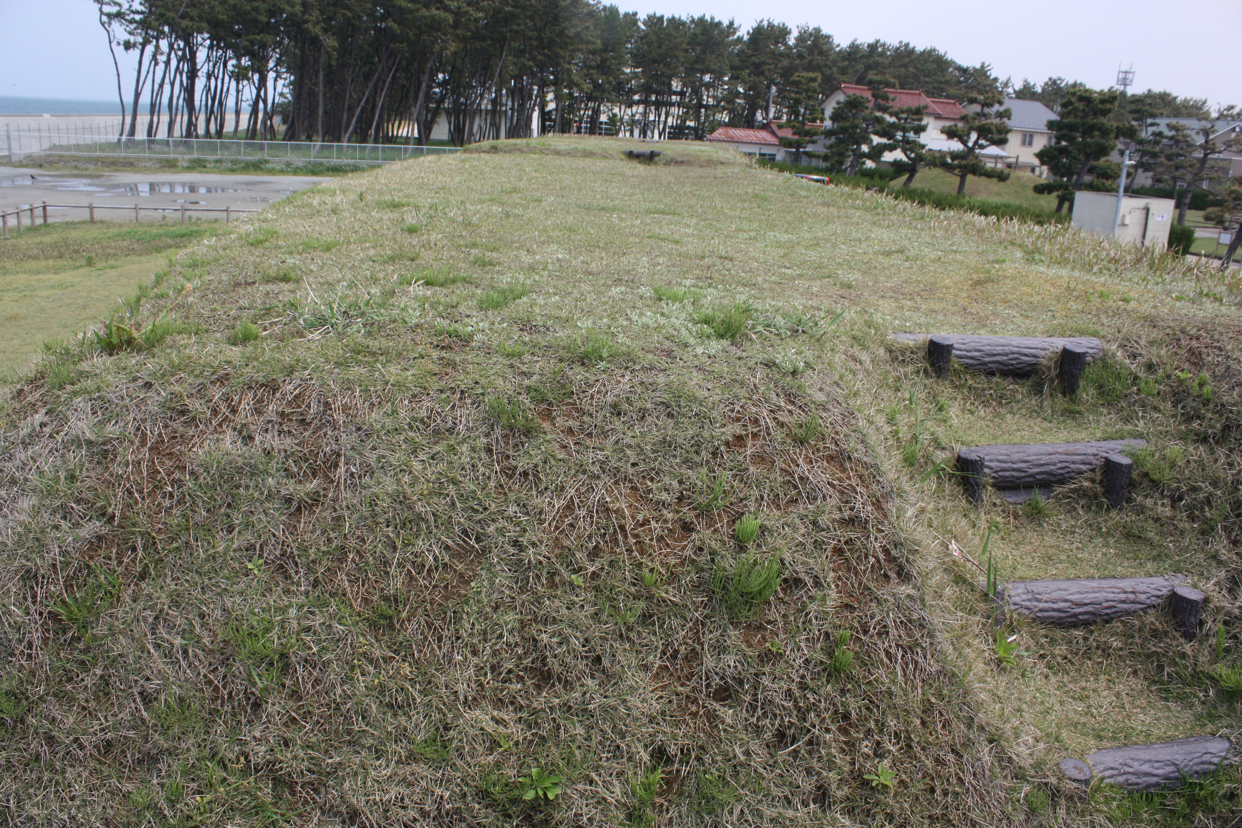 | 土塁の陸側は勾配が緩やかです |
