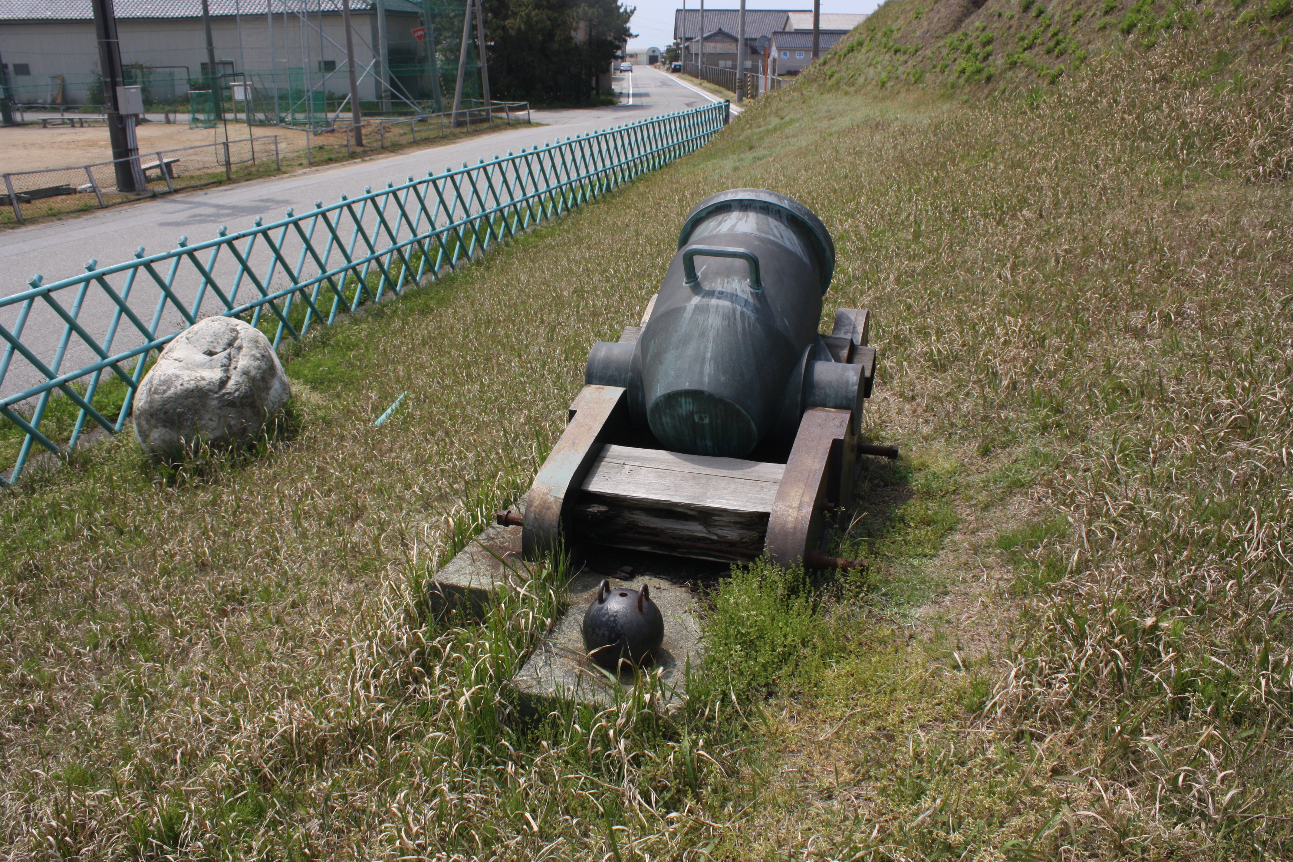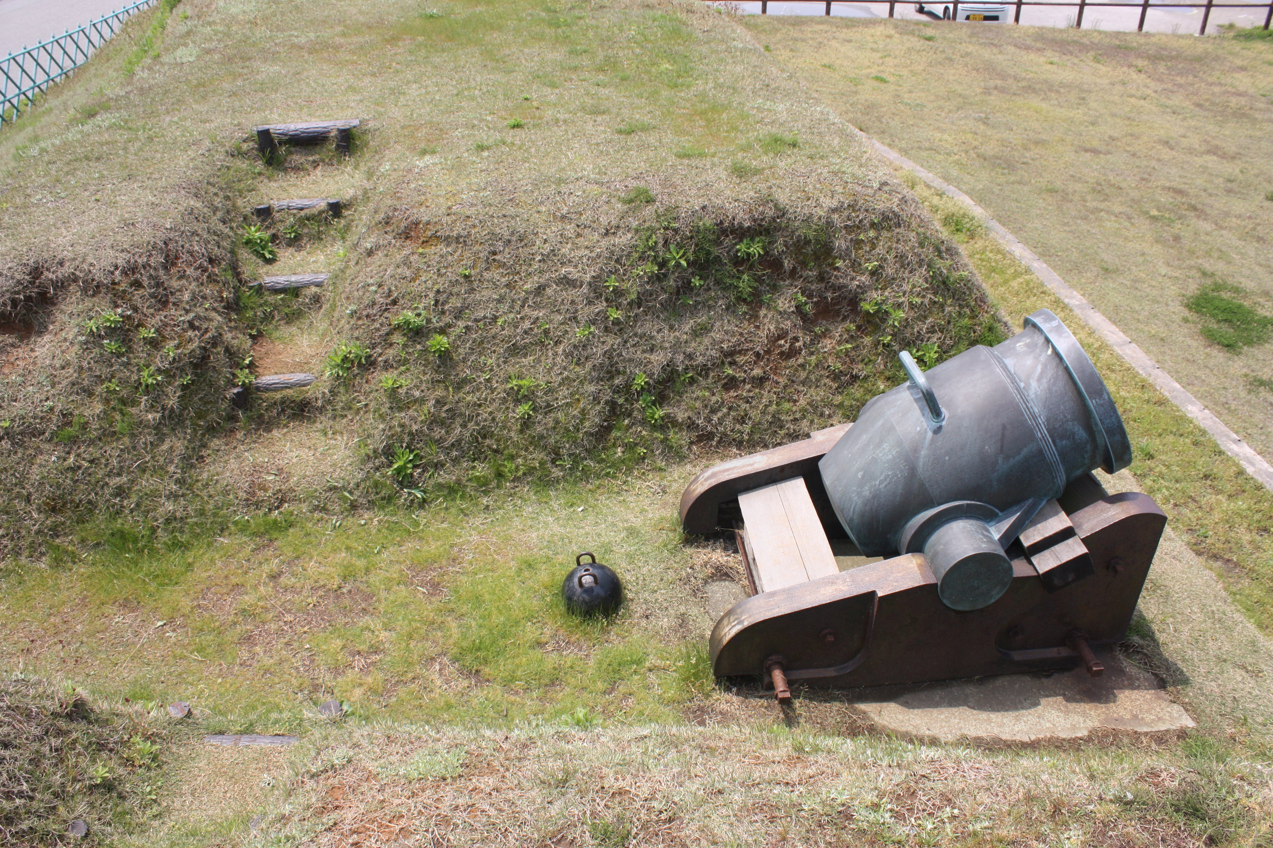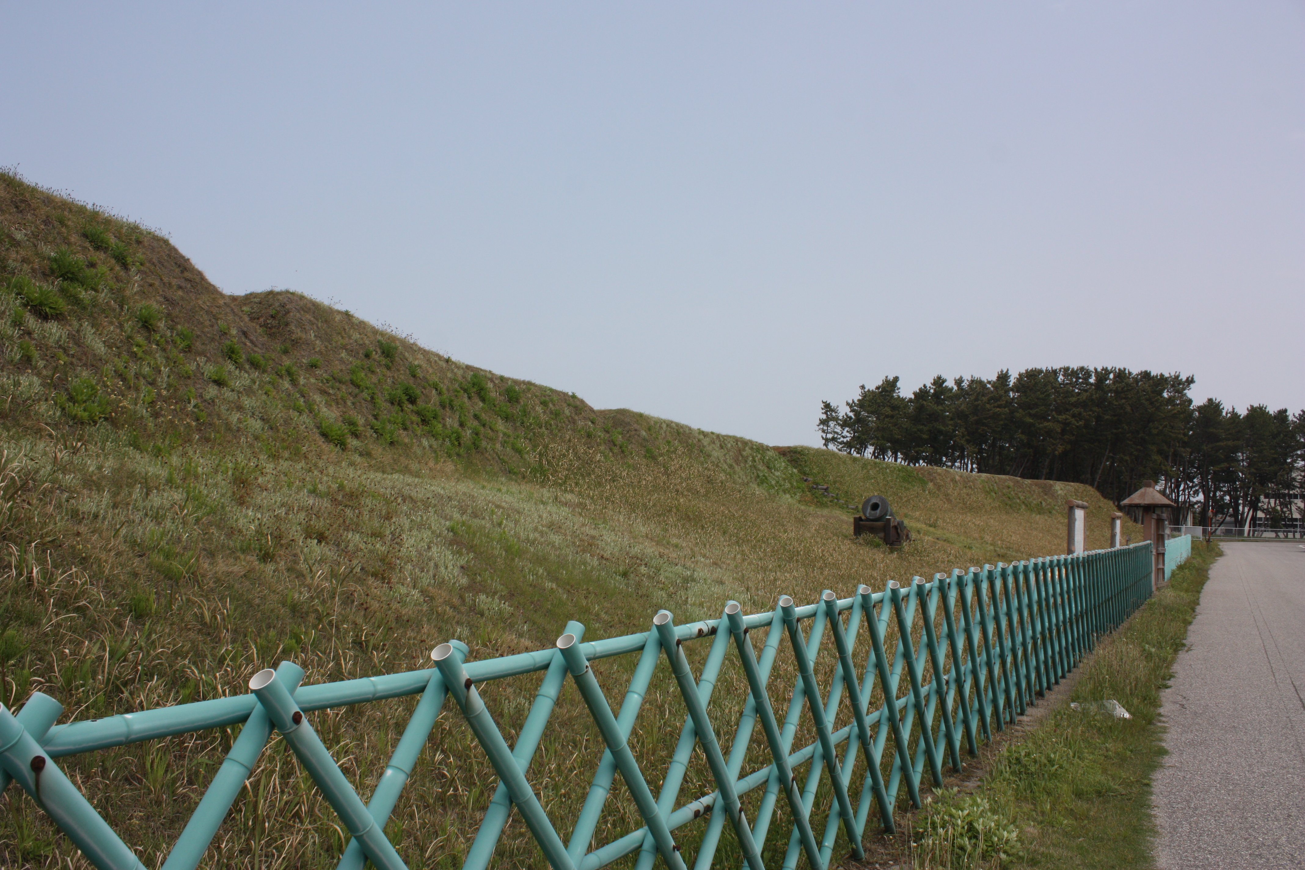 土塁、門、大砲 |
