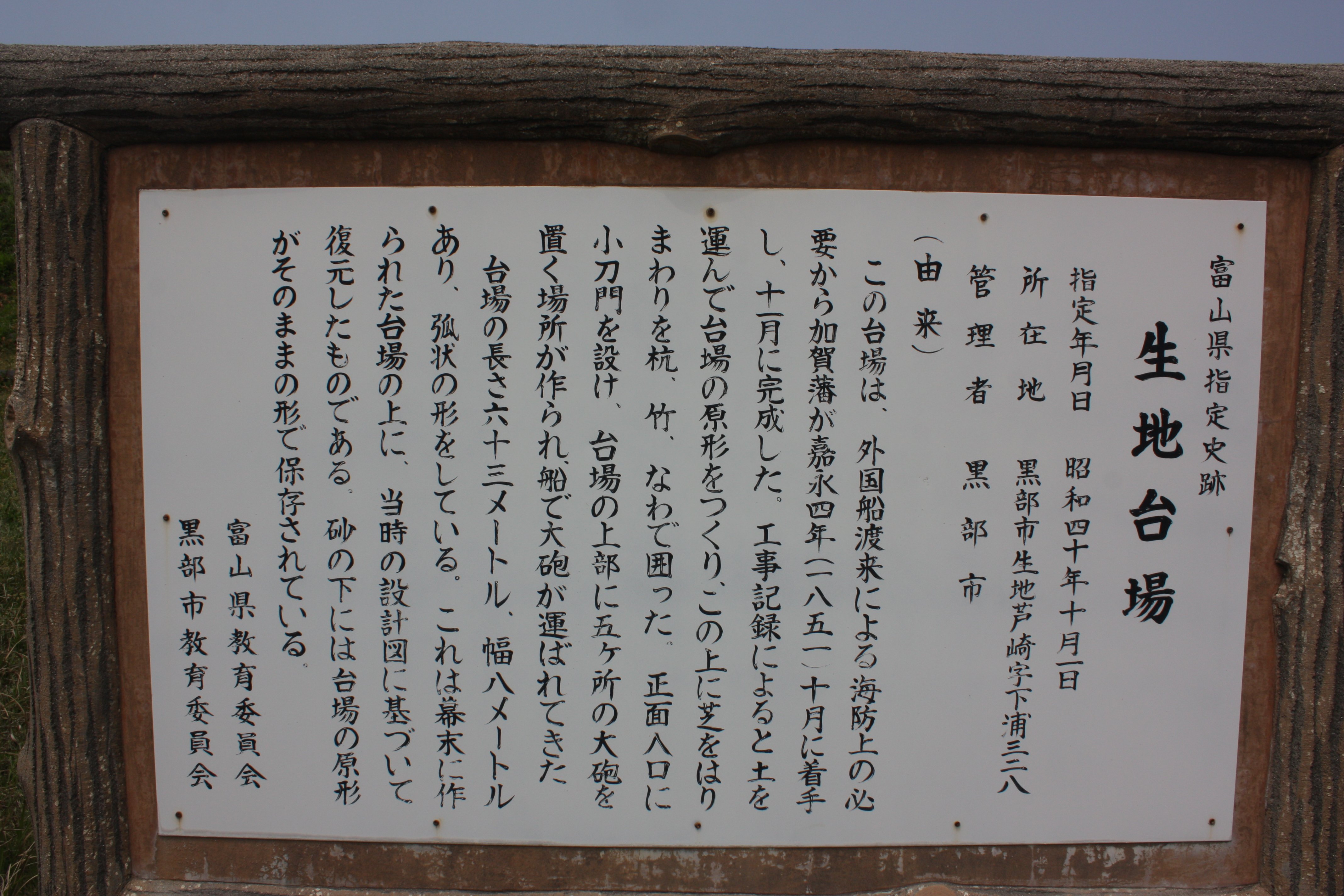 | 富山県指定史跡「生地台場」 |