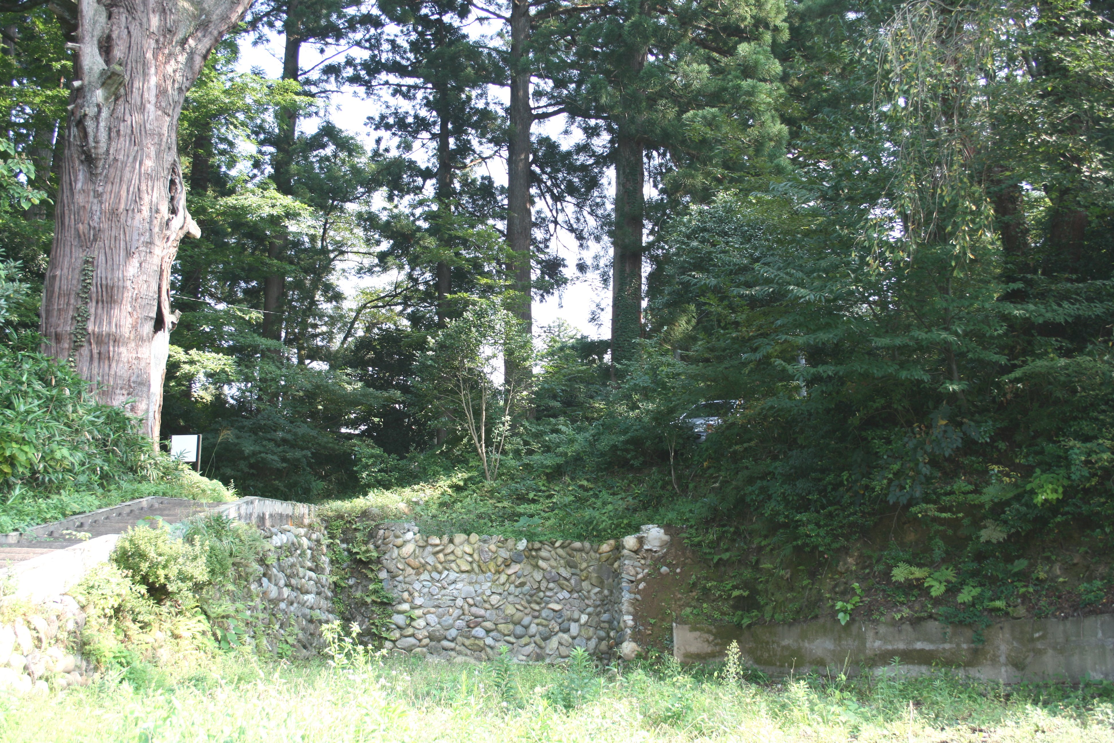本丸跡の井波八幡宮には、城の井戸であったという臼浪水が今も残されています。また二の丸跡の大手口には、樹齢五百年とも言われる「松島大杉」の巨木が今も健在です。