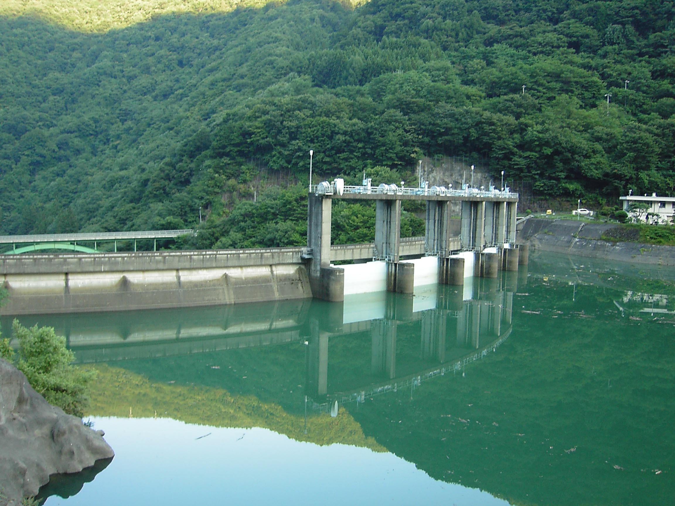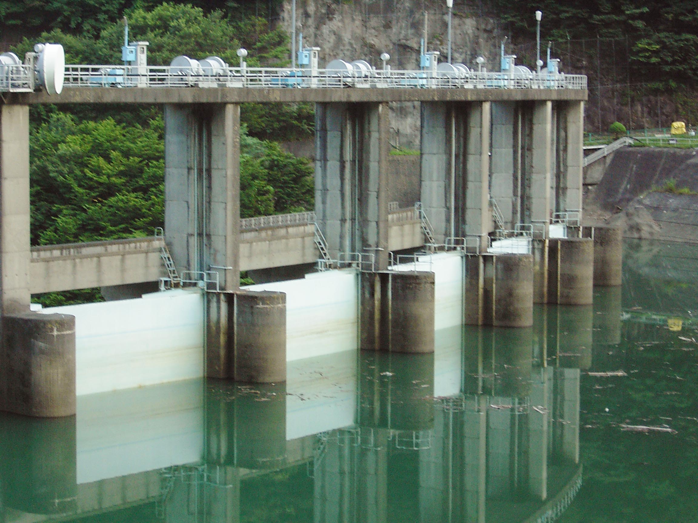 ローラーゲートは5門 左岸から堤体を真横に見る