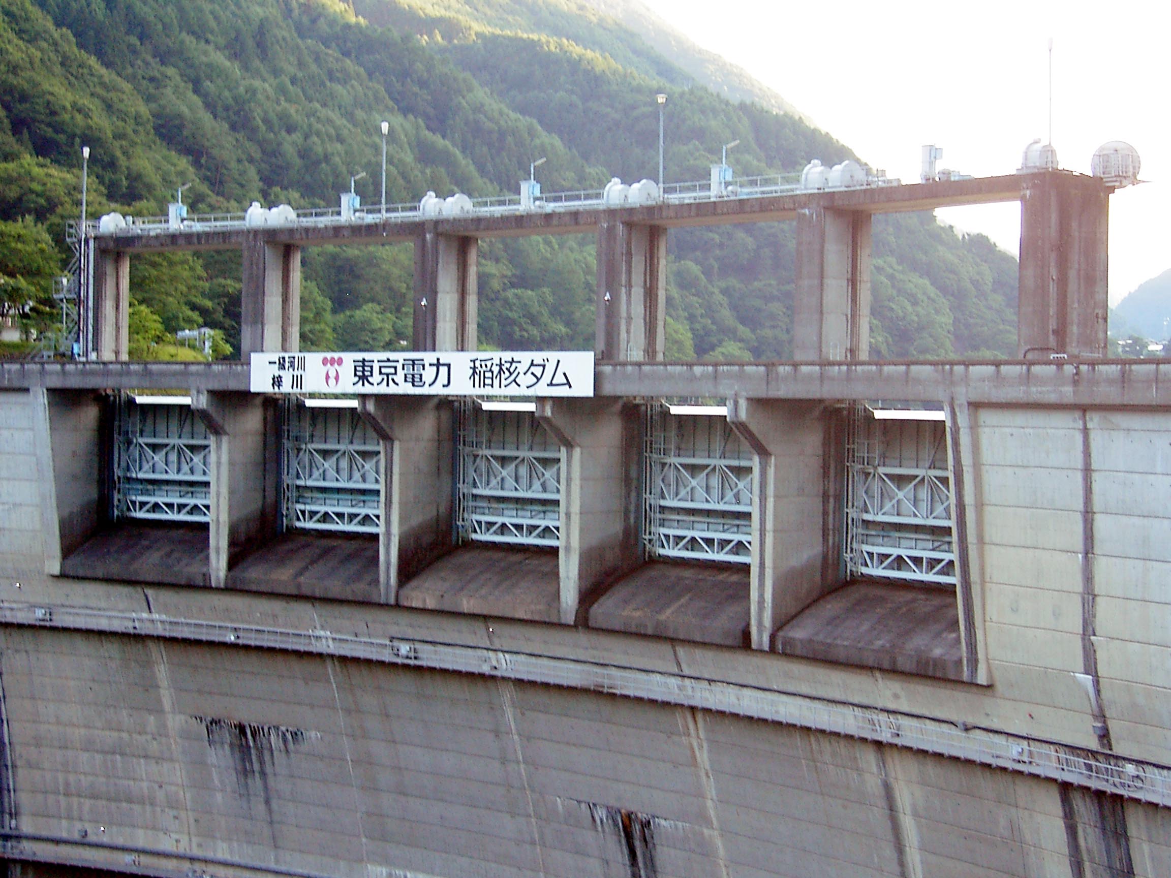 稲核ダムのクレストゲートは、ローラーゲートが5門、低流量放流管にはハウエルバンガーバルブが1門あります。