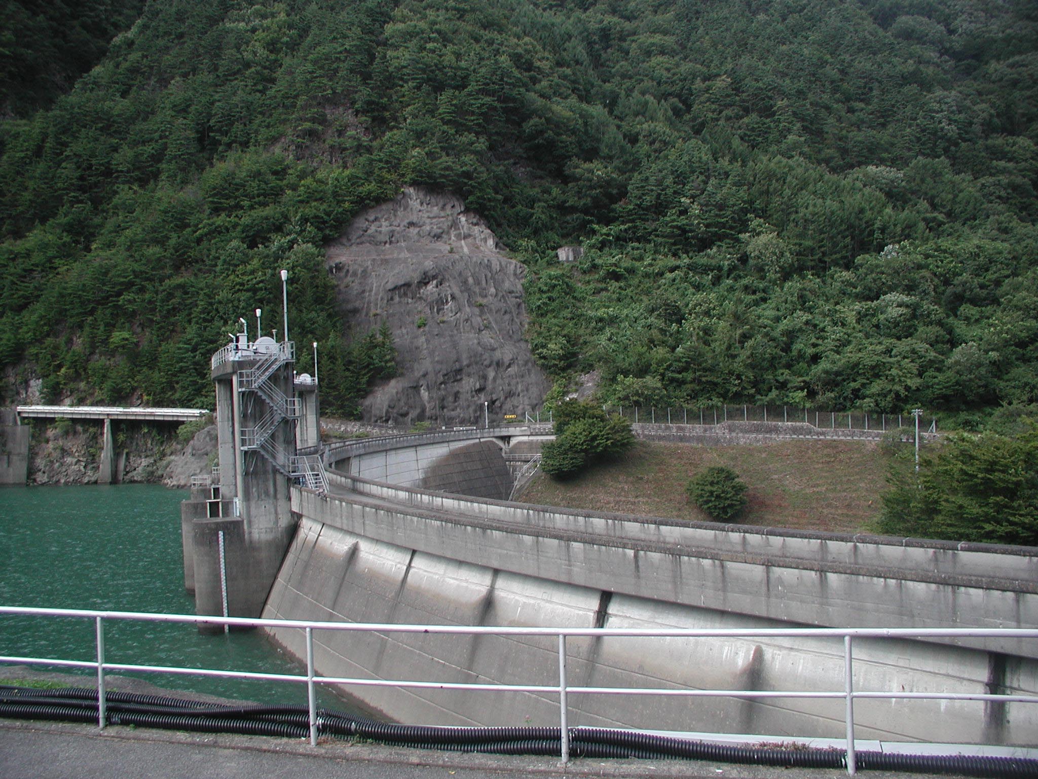 天端は立ち入り禁止でした 左岸上流側から堤体を望む