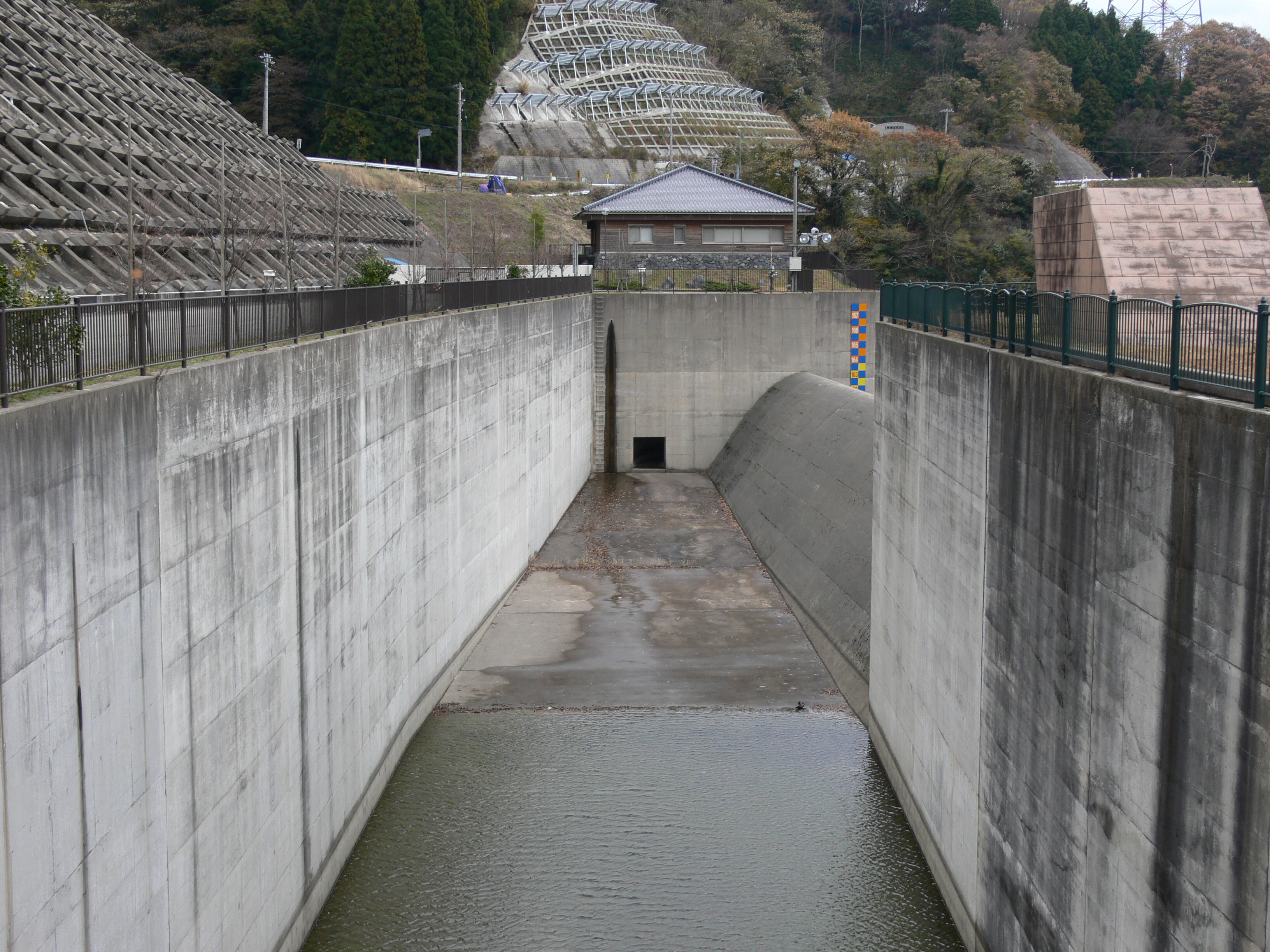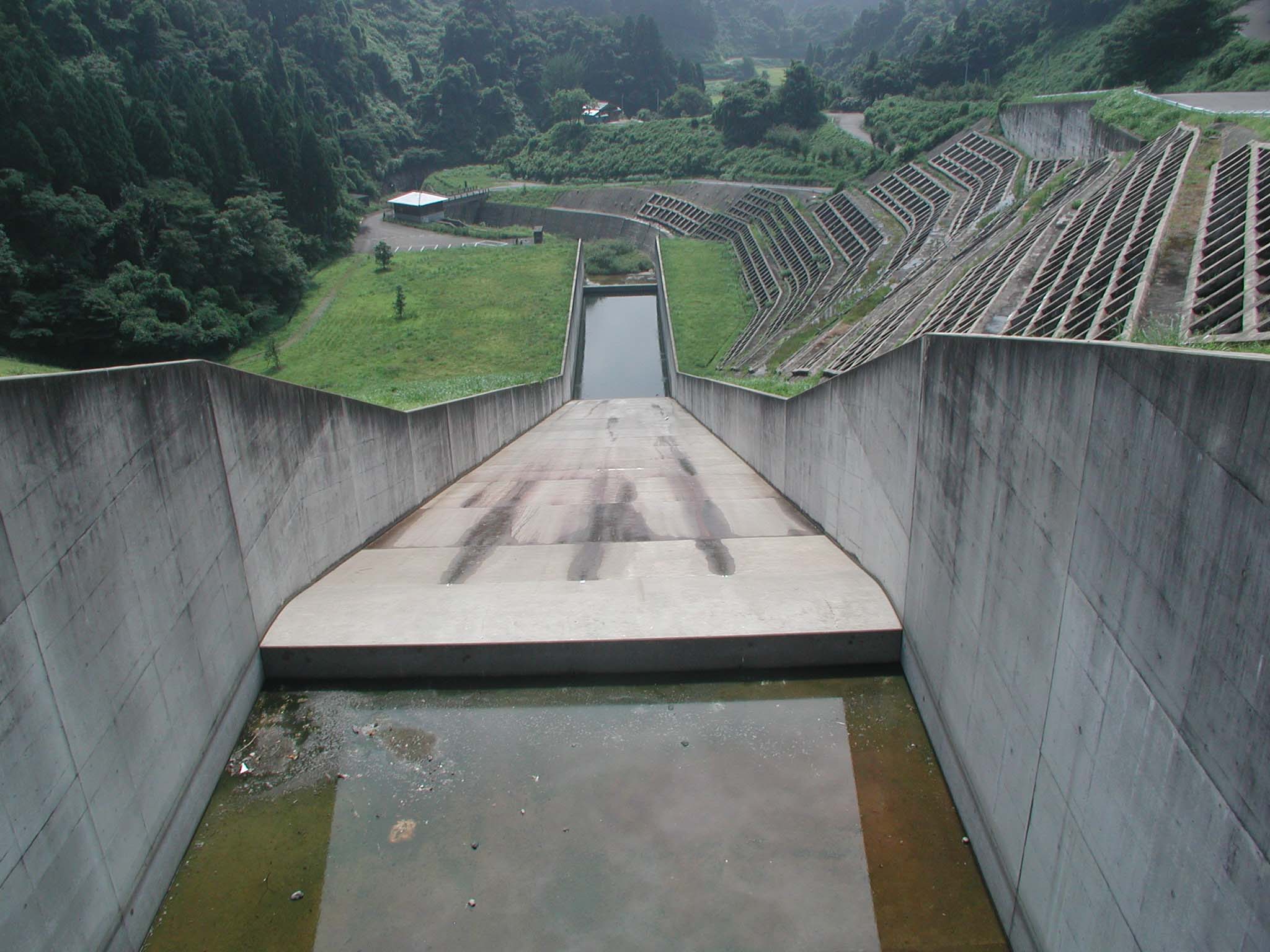 | 天端から下流側を見下ろす |