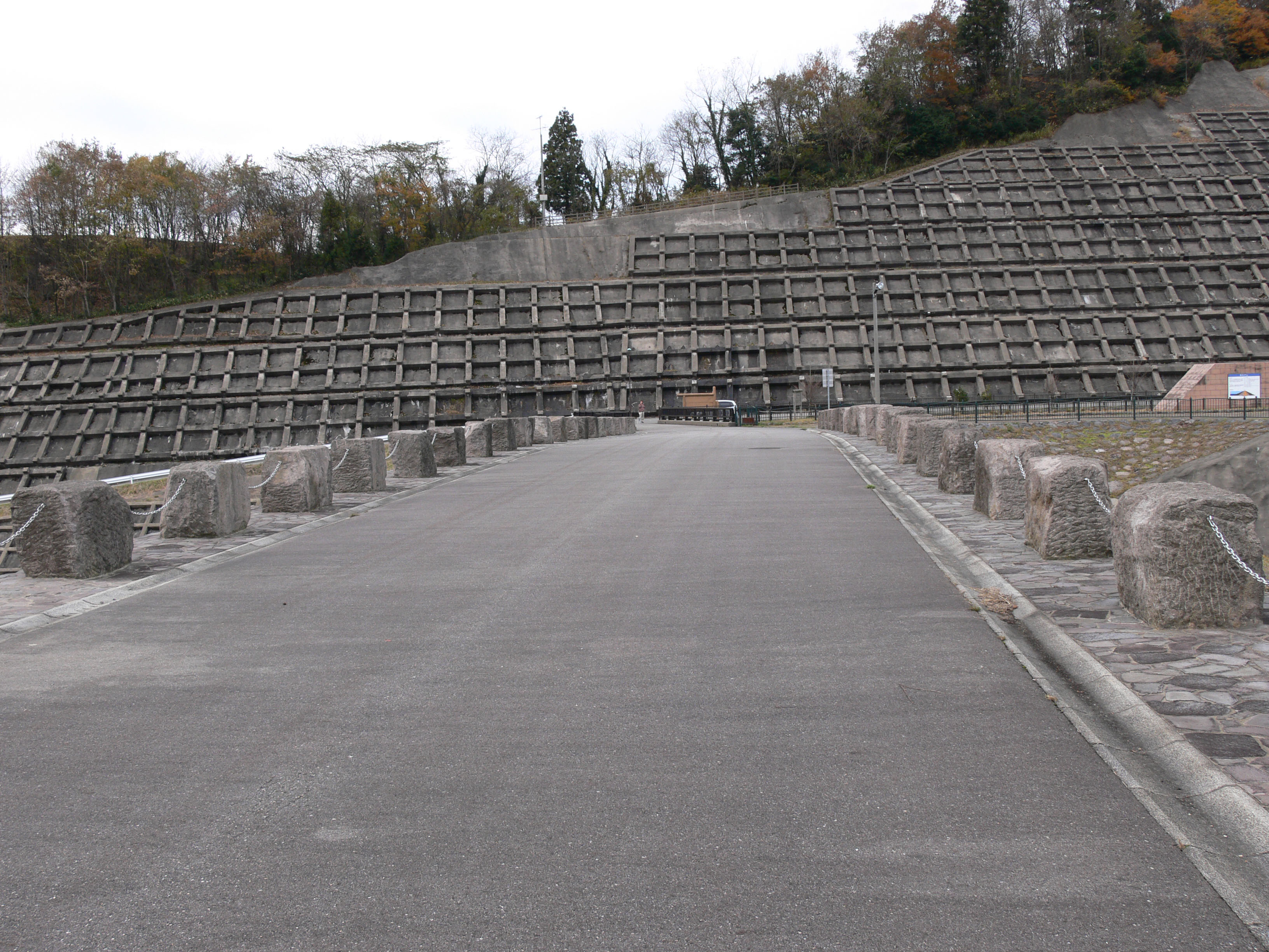 天端は、歩行者は通れますが、車は通れません。 |
