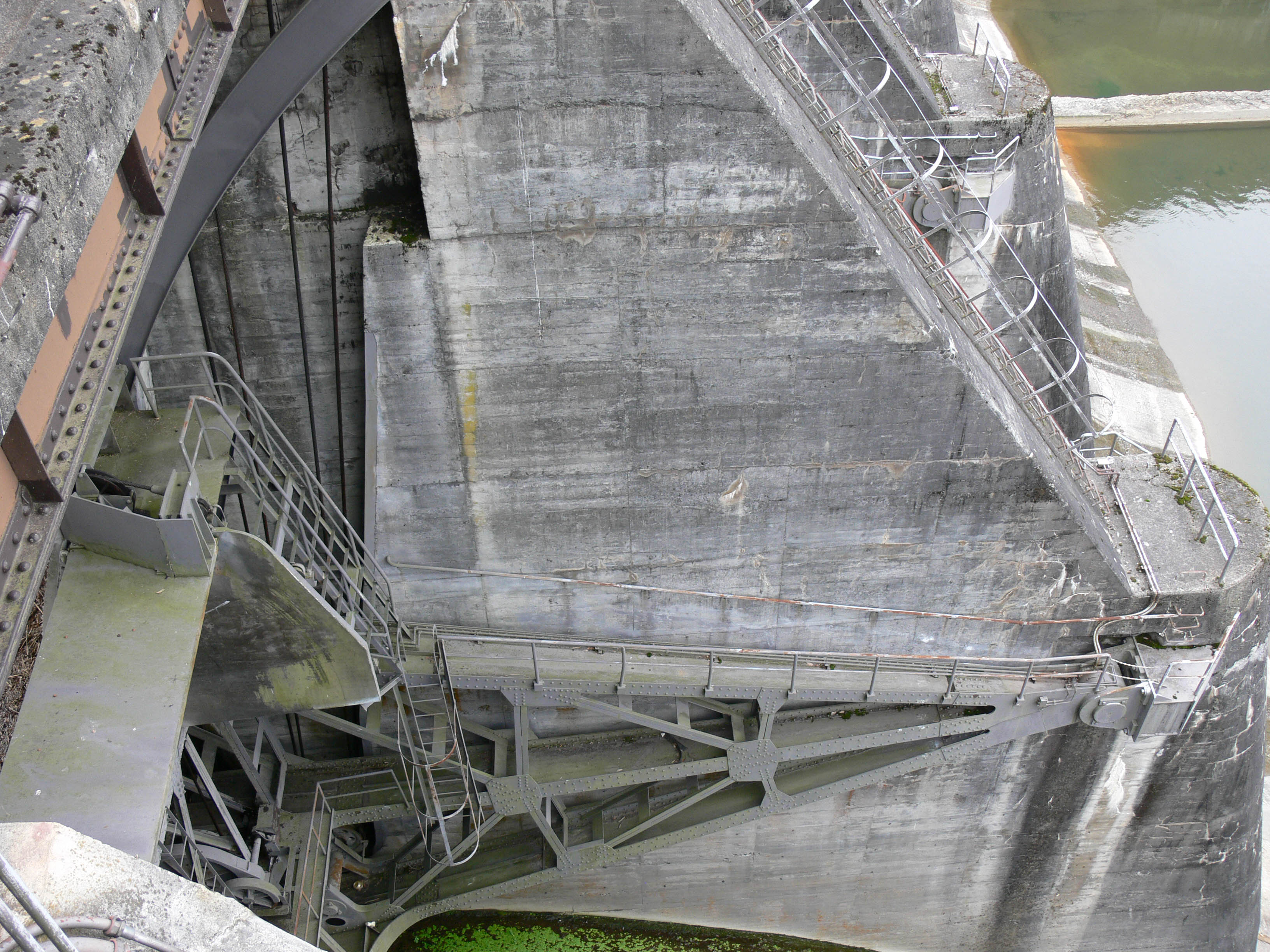 ここの神通川第二発電所は、最大出力が40000kwです。落差が小さい割には大出力なのは水量が多いからです。