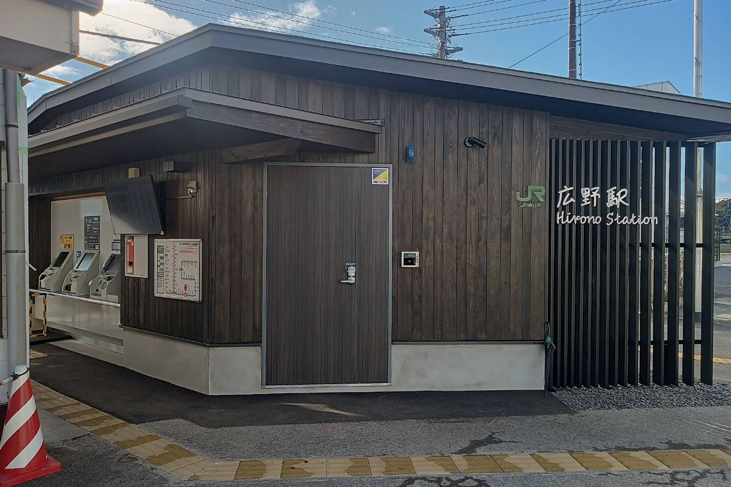 新駅舎では多機能券売機、話せる指定席券売機、自動精算機(交通系ICカードチャージ機能、乗車駅証明書を使用した清算機能を有するいわゆる黄色い自動精算機)、乗車駅証明書発行機がそれぞれ操作面を屋外に出している状態で設置されているほか、駅舎横に簡易Suica改札機、駅係員問い合わせ用のインターホンが設置されている。