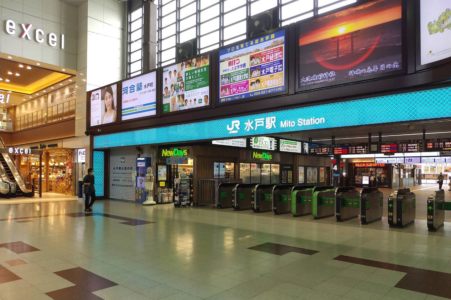 南北両出口に駅ビルを有する。北口側はかつては「水戸観光デパート」、現在は「EXCEL」が営業している。南口側には「エクセルみなみ」がある。