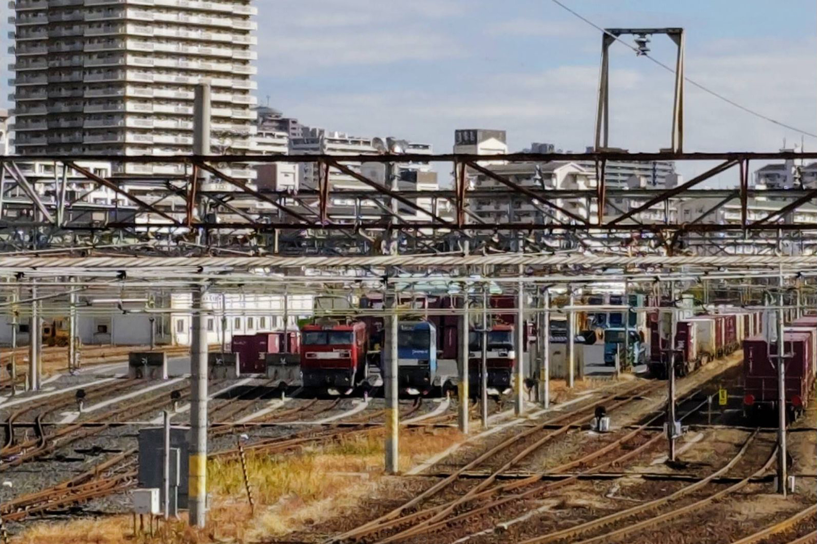 北東部に広がる貨物駅の縮小部分は平成以降に順次再開発が行われ、超高層マンションなどが立ち並んでいる。