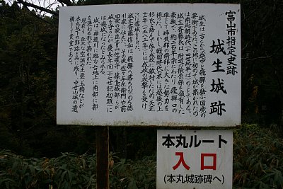 戦国時代には、この地は飛騨勢の北進を防ぐ拠点として、また飛騨-越中間の交易の拠点として重要視され、抗争の場となっています。越後国守護代長尾為景の要請に応えて飛騨口を守備したり、また越中国守護代で富山城主神保長職や越中国願海寺城主寺崎盛永、飛騨国の国人で越中国猿倉城主塩屋秋貞に攻められたりしていますが、この城生城は要害の地にあり、ここを落とすことは難しかったようです。