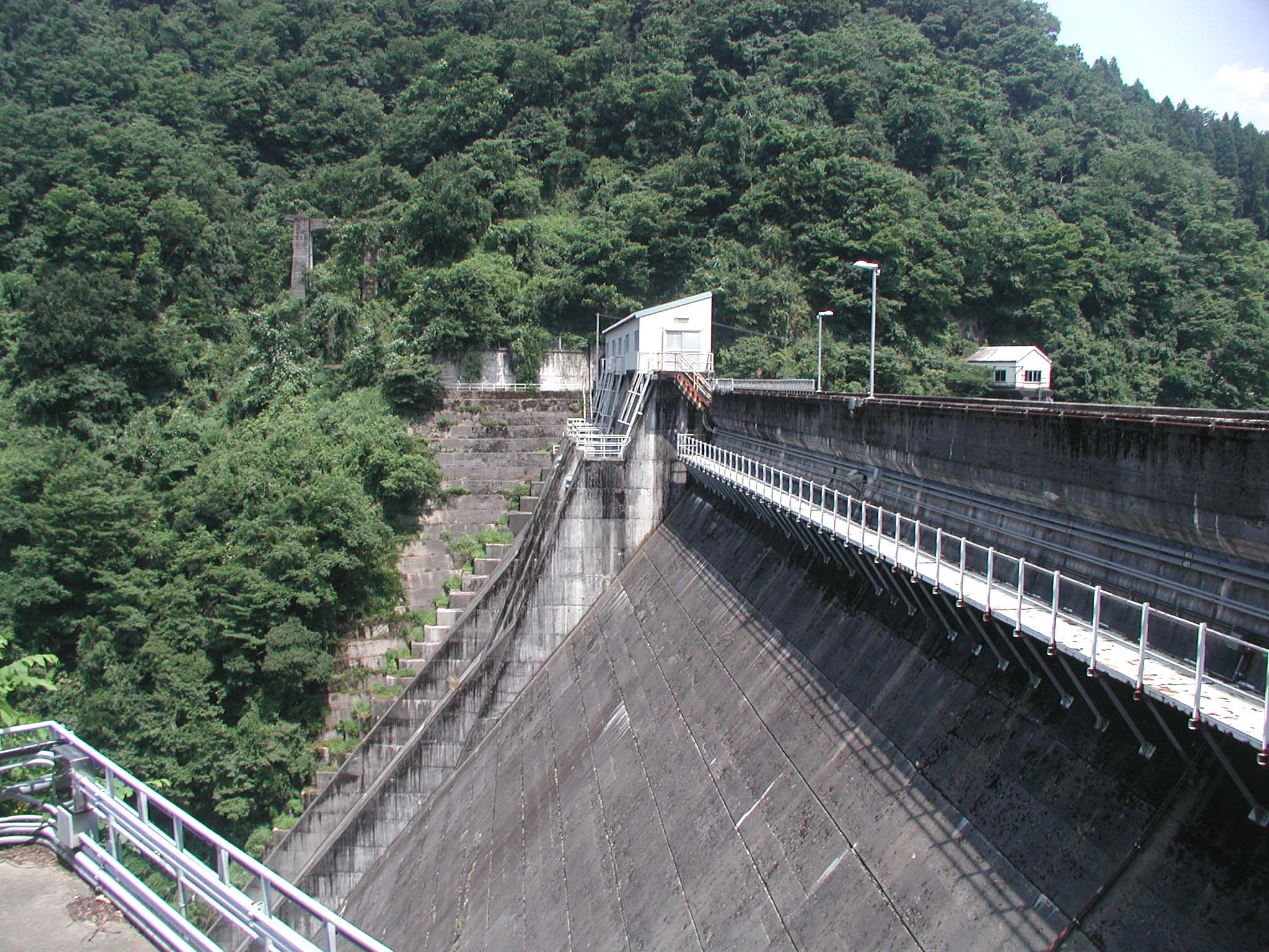 ゲートはクレストゲートが2門、オリフィスゲートが1門というところで、神通川や庄川のダム群のゲートに比べると極めて控えめな陣容です。ということで、取り立てて特徴のあるダムではありませんし、さほど大きいダムでもありません・・・。