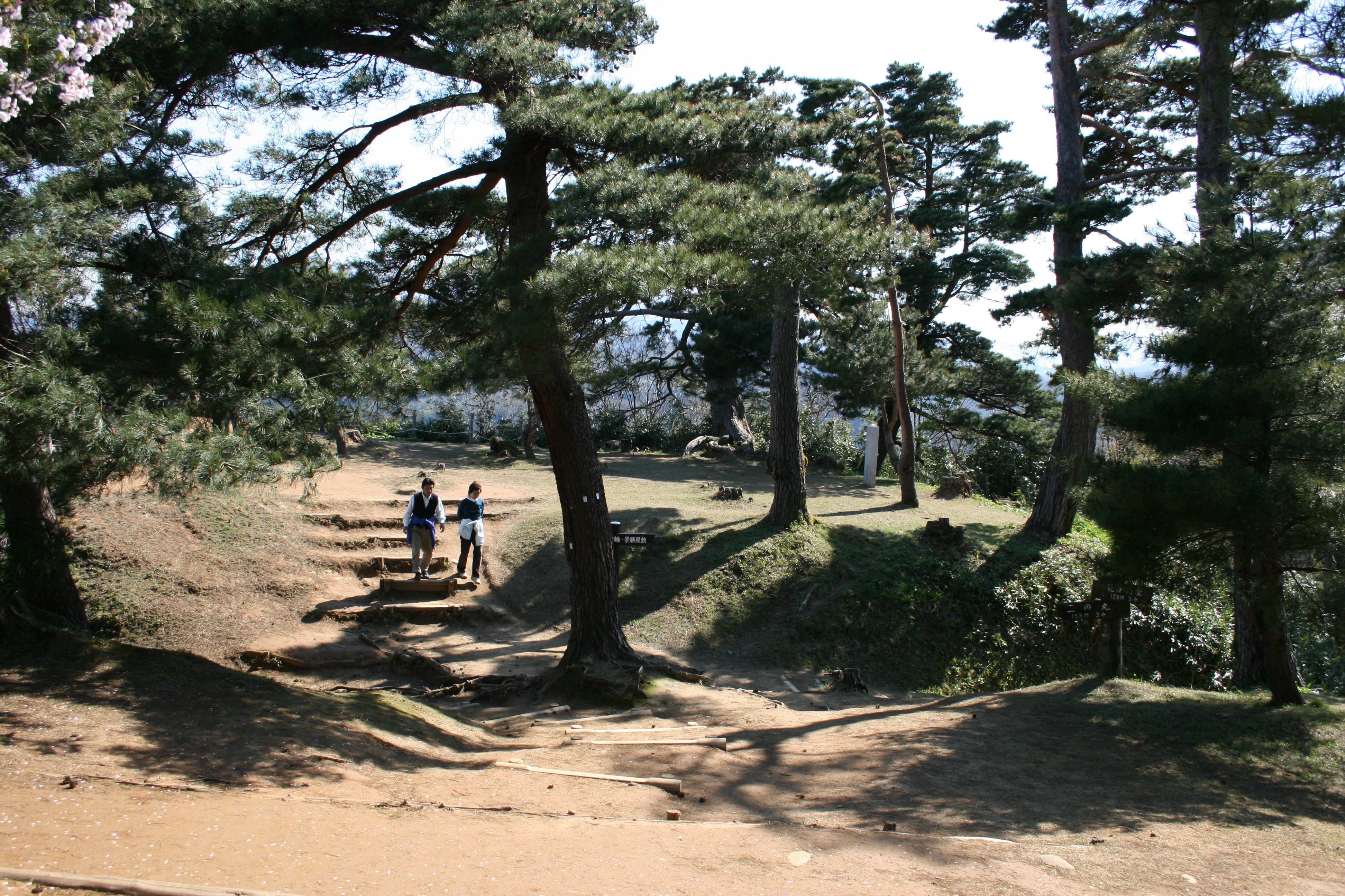 さて天守があったのかどうか、気になる向きもあるでしょう。これについては正確なことは判らないのです。ただ、絵図にはよく石垣や天守が描かれているのですが、実際には石垣も瓦も全く発見されていないので、実際には石垣も天守もなかったのだと思われます。ただ、本丸の天守閣跡と言われている場所にはそれなりの建造物があったと推定されているので、天守とまではいかないとしても城のシンボルになるような建造物があったと考えてもおかしくはありません。