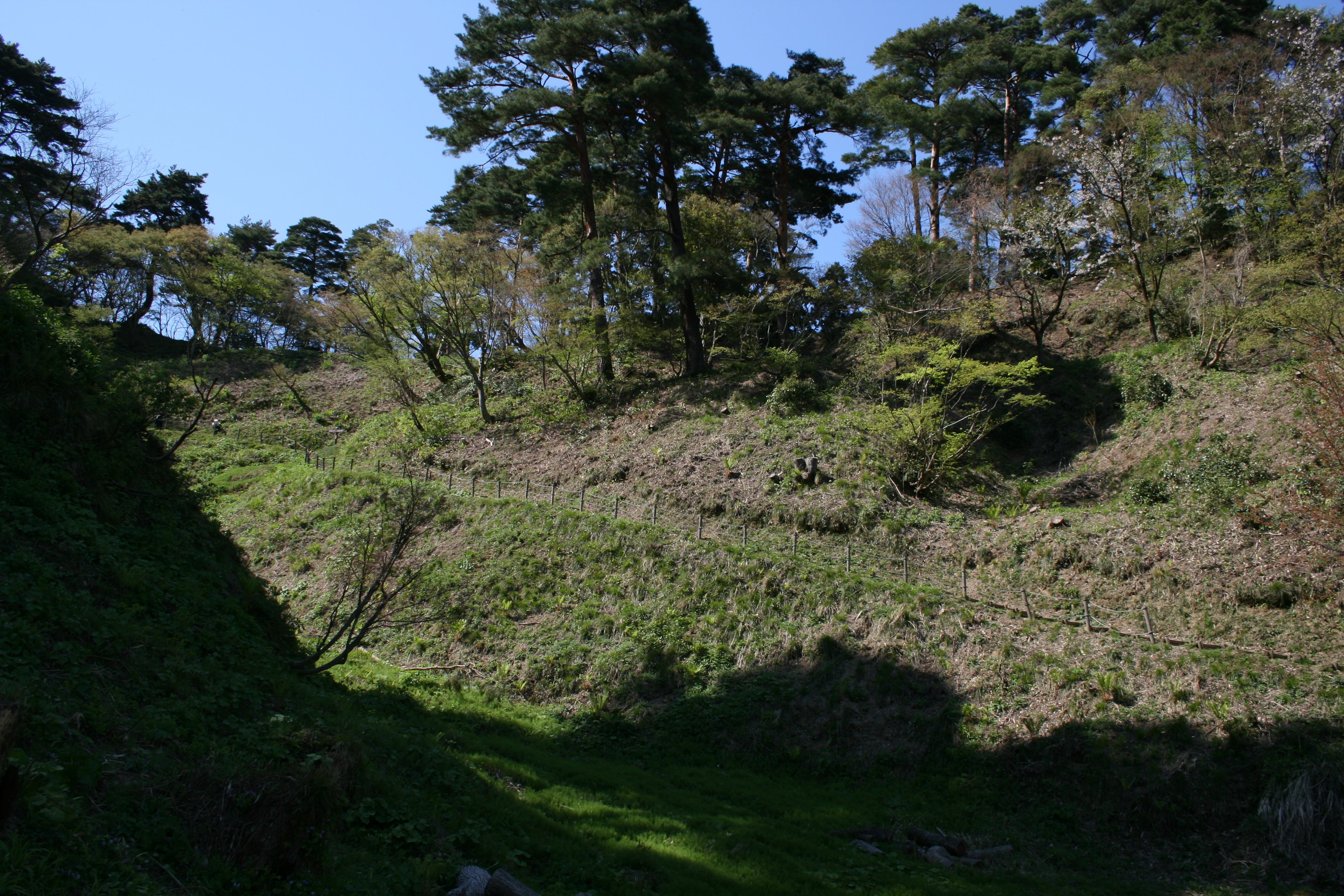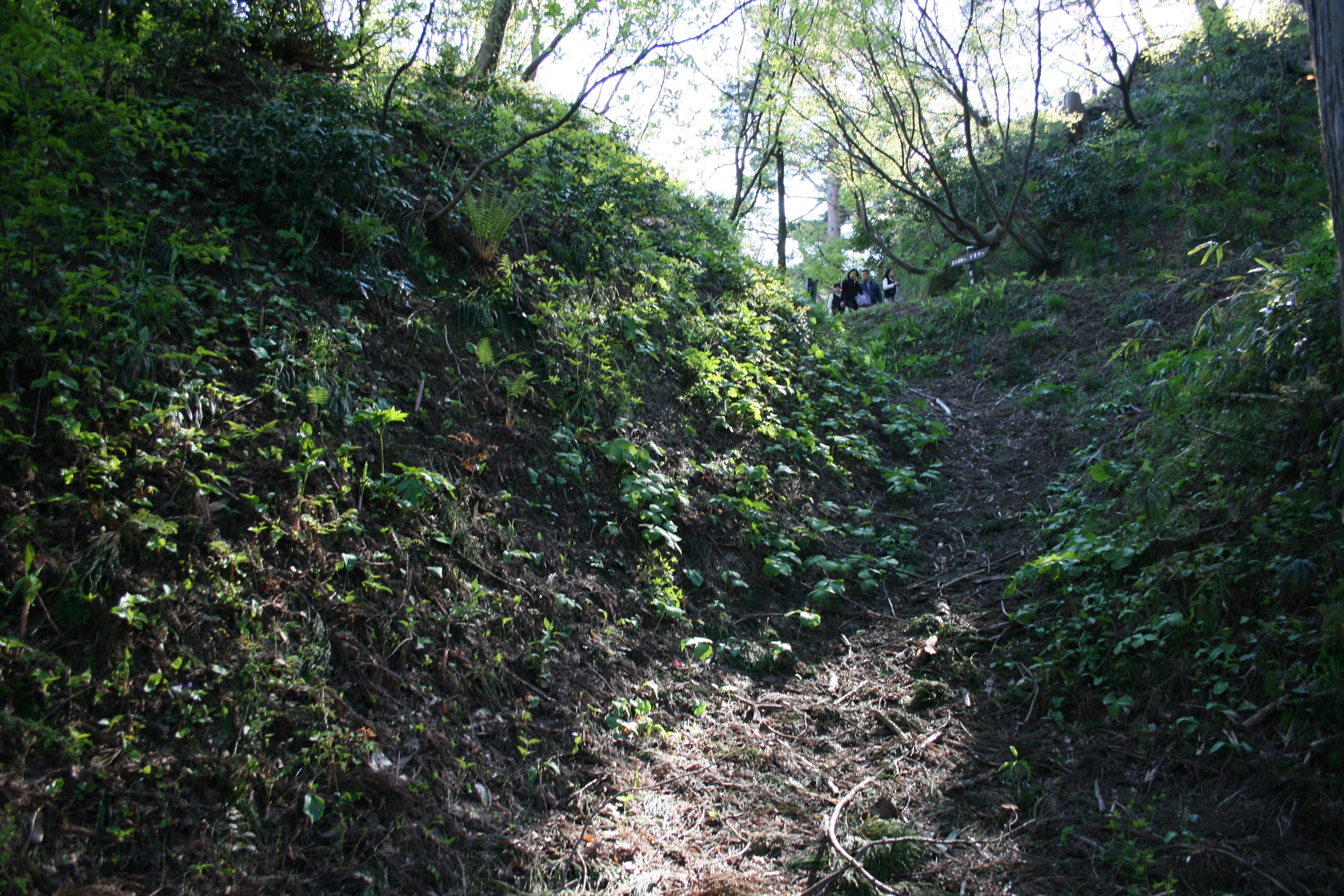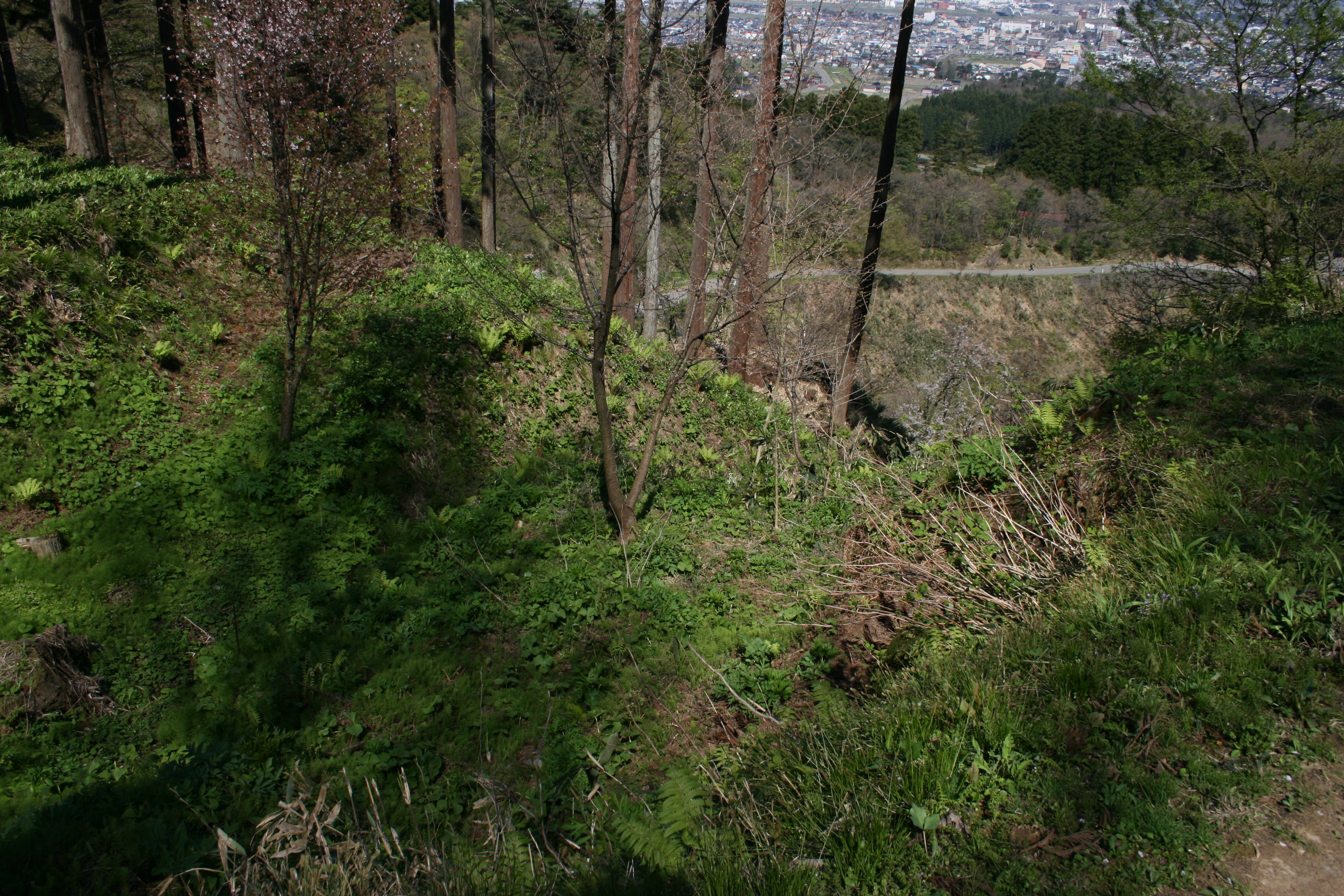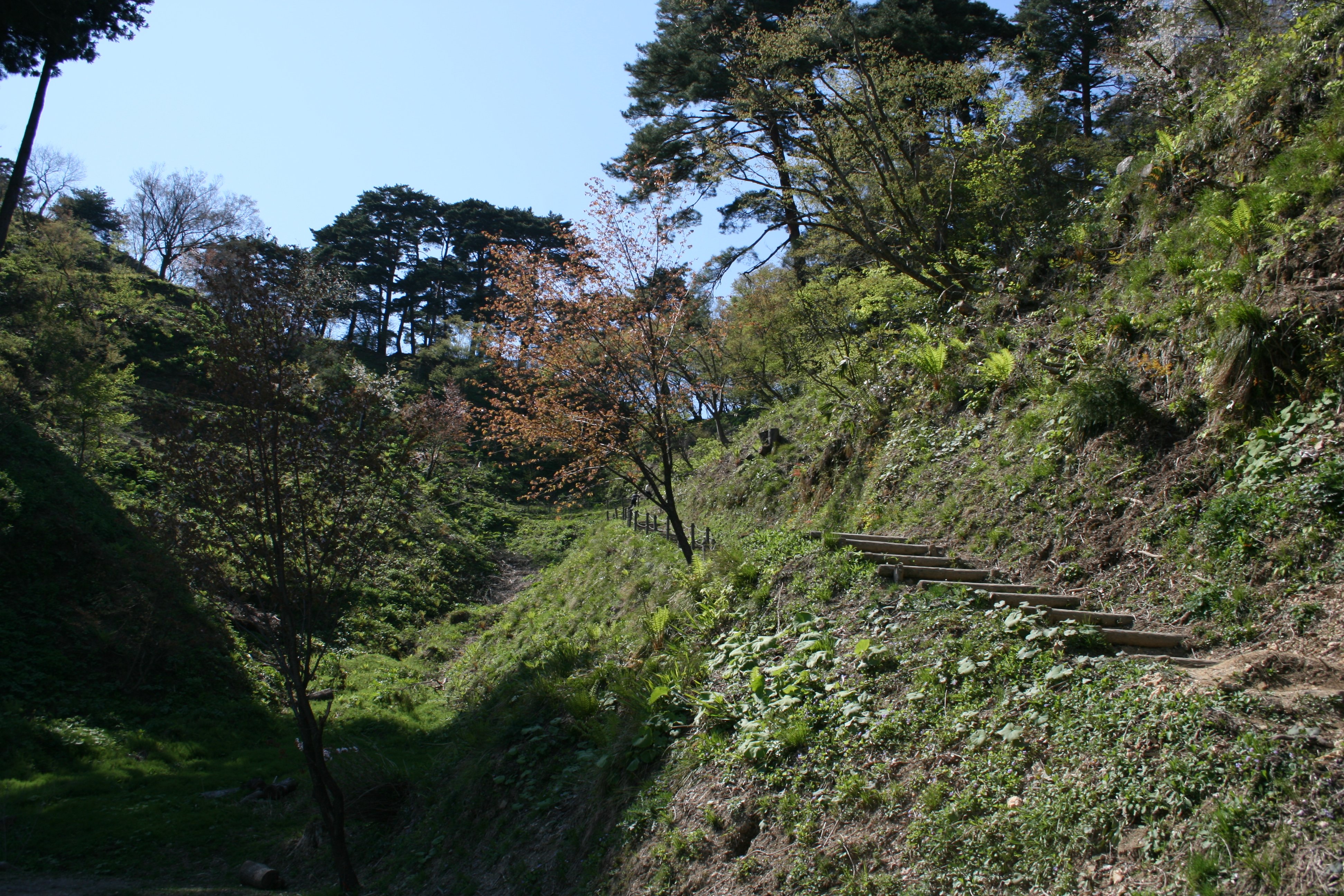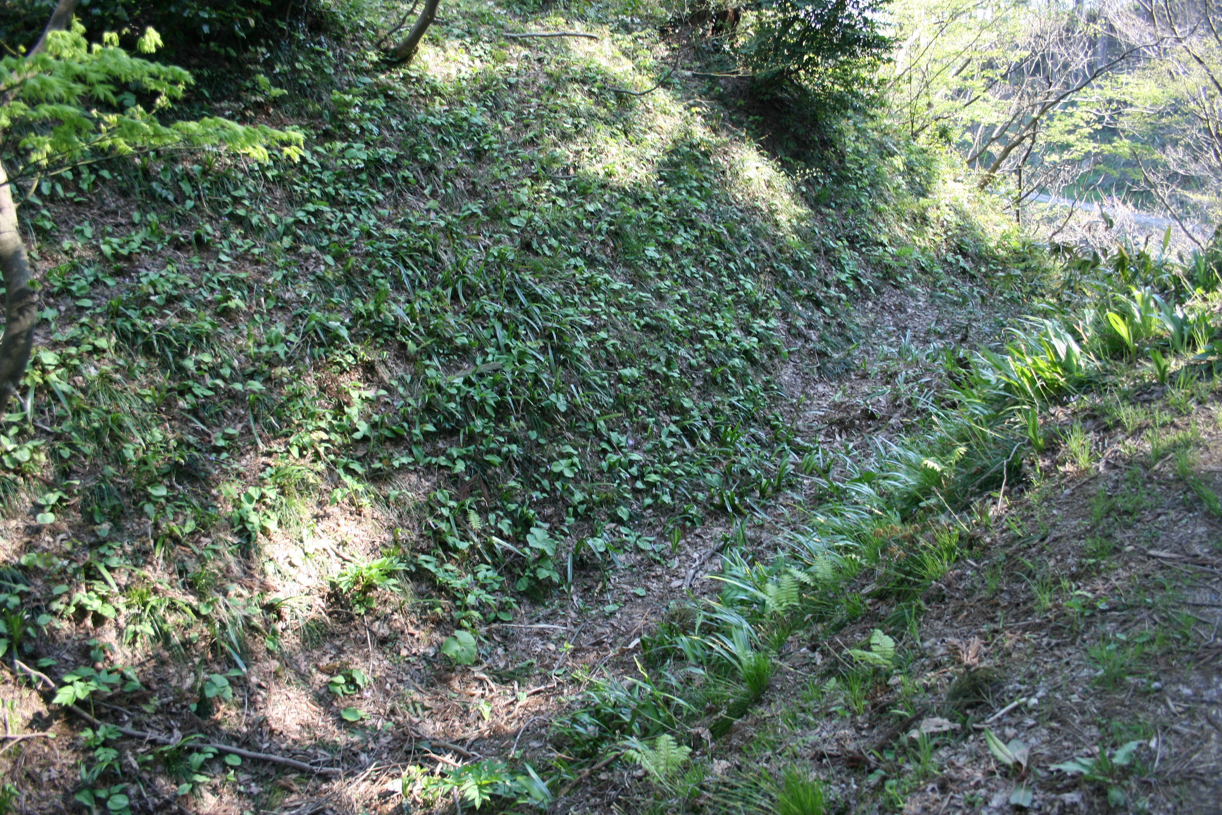 当城の造りはいかにも中世山城といった風で、石垣はなく土塁と空堀があるだけで特に真新しい構造の部分も見あたりませんが、城のあちこちに家臣の屋敷跡が残っているのはなかなかおもしろいところです。