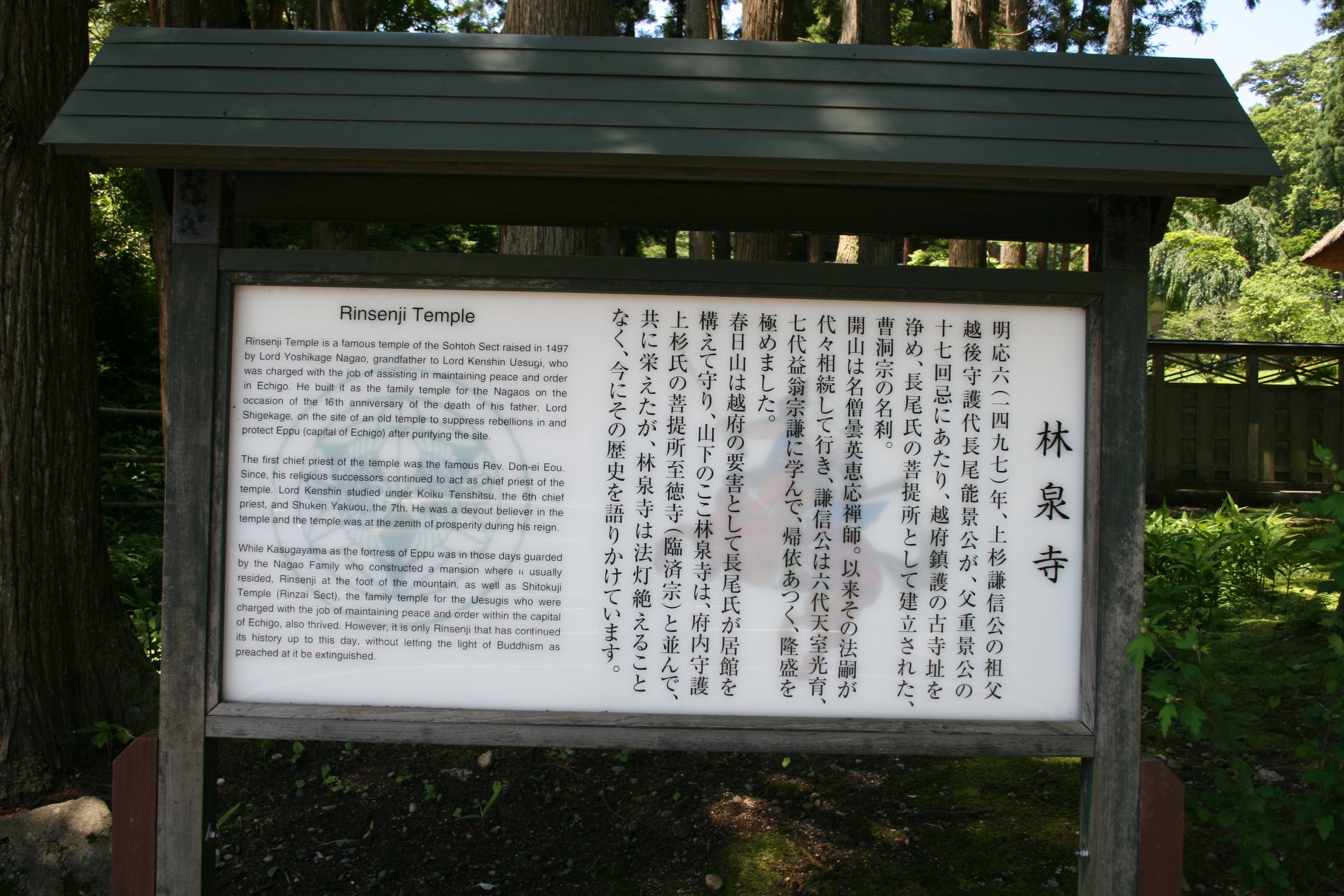 また春日山城跡史跡広場の近くには林泉寺があり、上杉謙信、堀氏、松平氏、榊原氏の墓所となっていて、宝物館もあり貴重な品や資料も収められています。また入口にある惣門は春日山城の搦手門が移築されたものとも言われていますが、本当かどうかはわかりません。