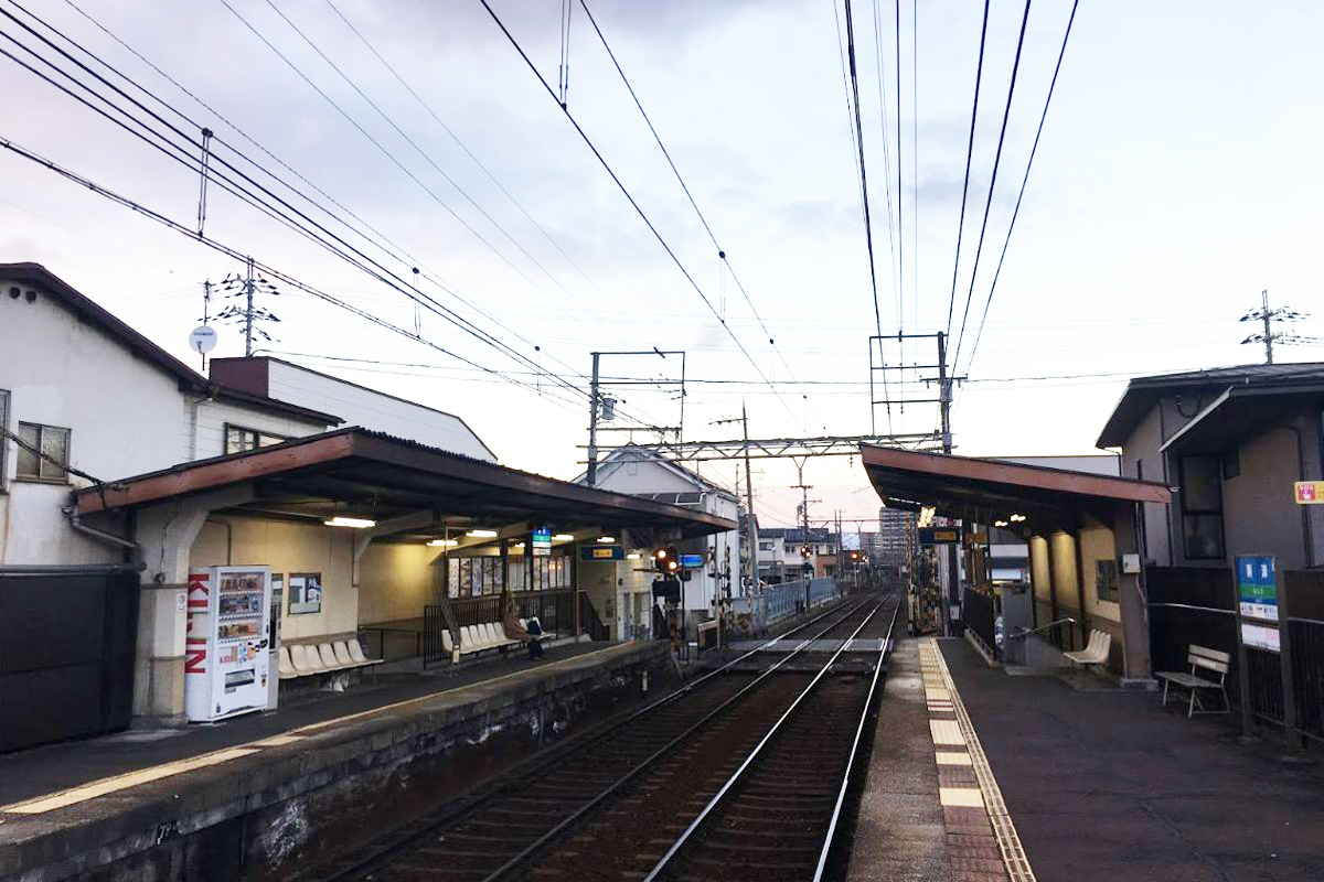 駅番号はOT04。相対式2面2線ホームをもつ地上駅です。