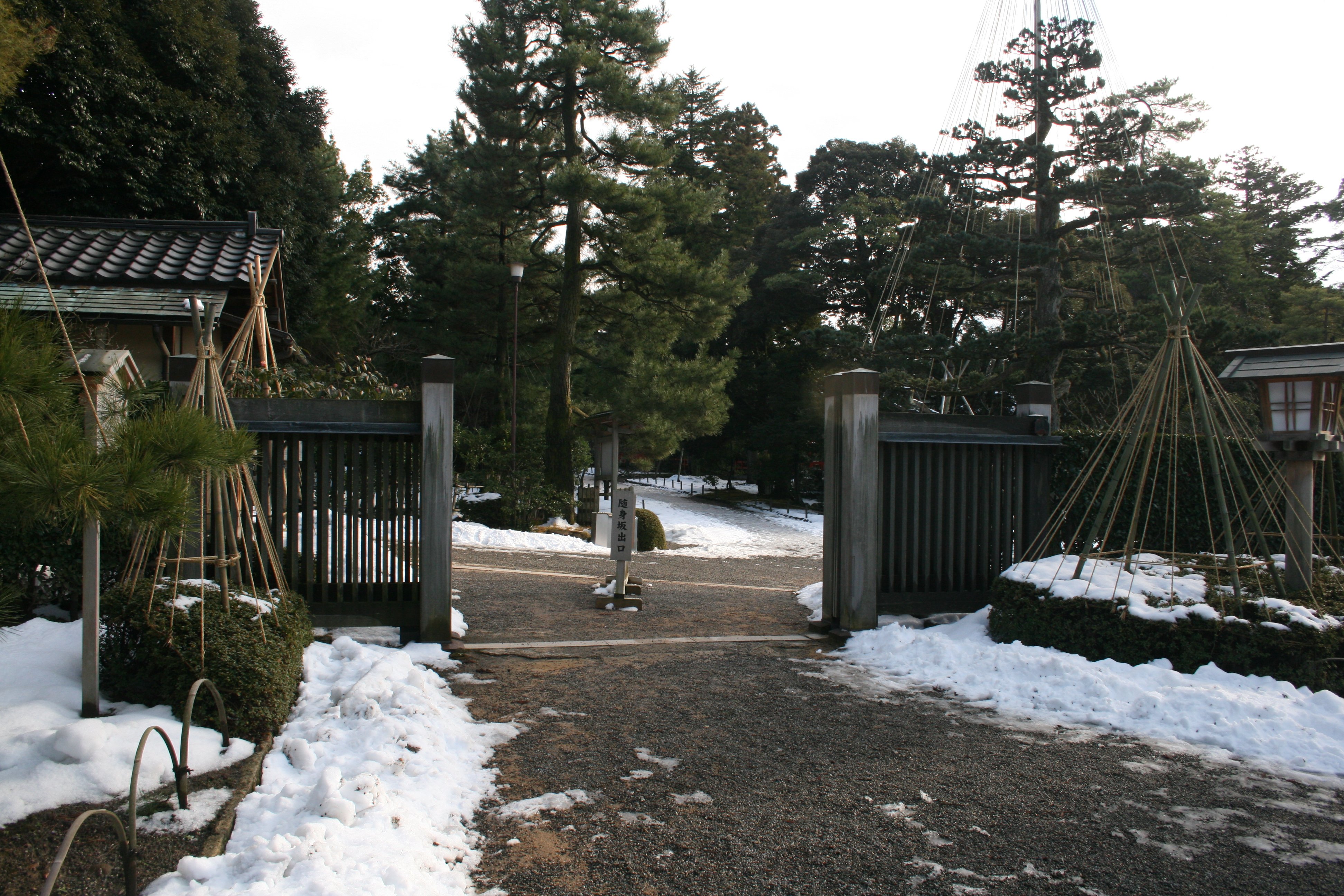 兼六園は、江戸時代に加賀藩前田家の庭園として造られたことに端を発します。延宝4年(1676年)に5代藩主前田綱紀が「蓮池亭(れんちてい)」を造り、その庭を「蓮池庭(れんちてい)」と呼んだのが始まりとされています。これは、蓮池門(れんちもん)を入った辺りであり、現在7つある門の中で正門とされています。当時は、金沢城の外郭として城に属していました。