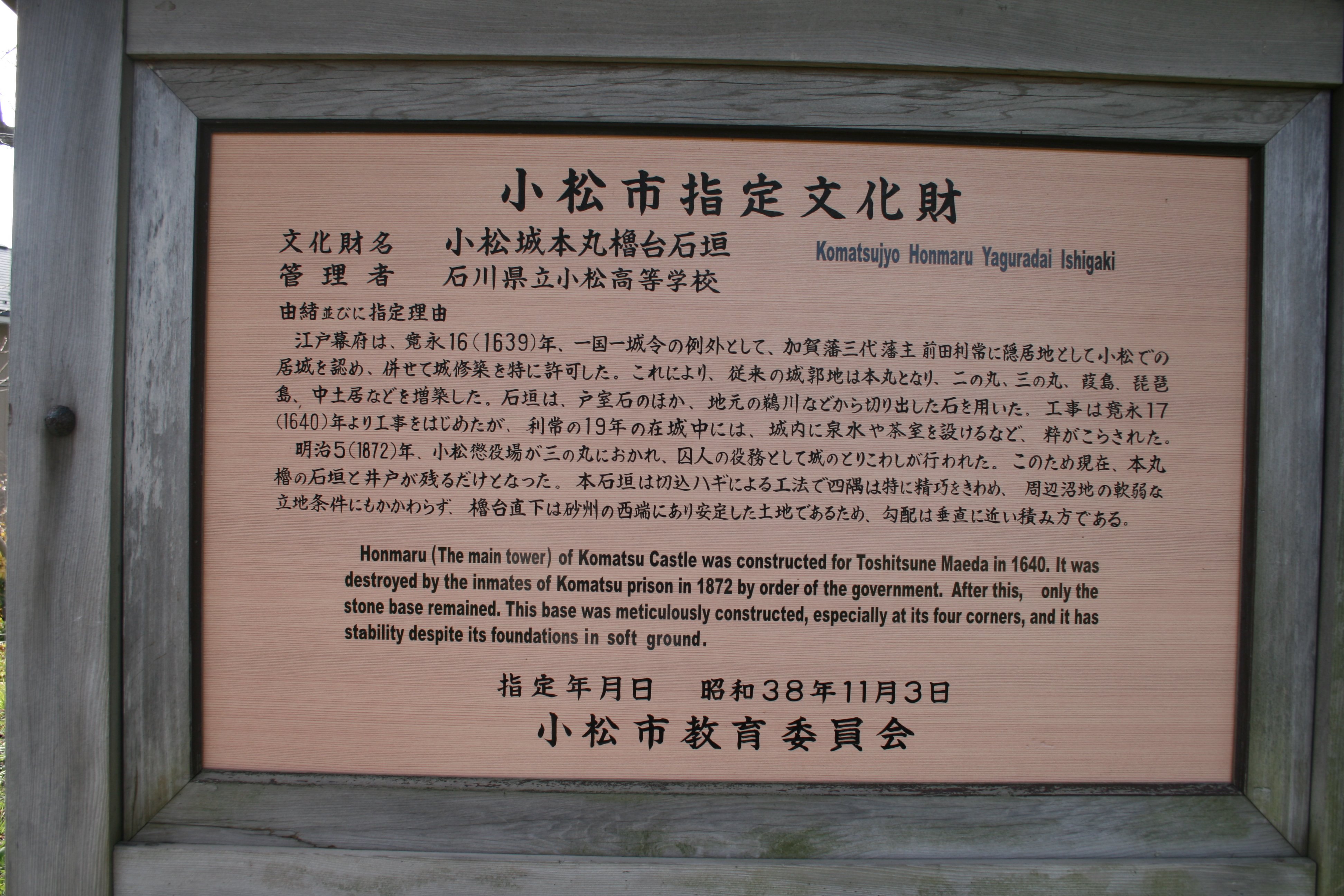 現在は、小松市指定史跡となっています。