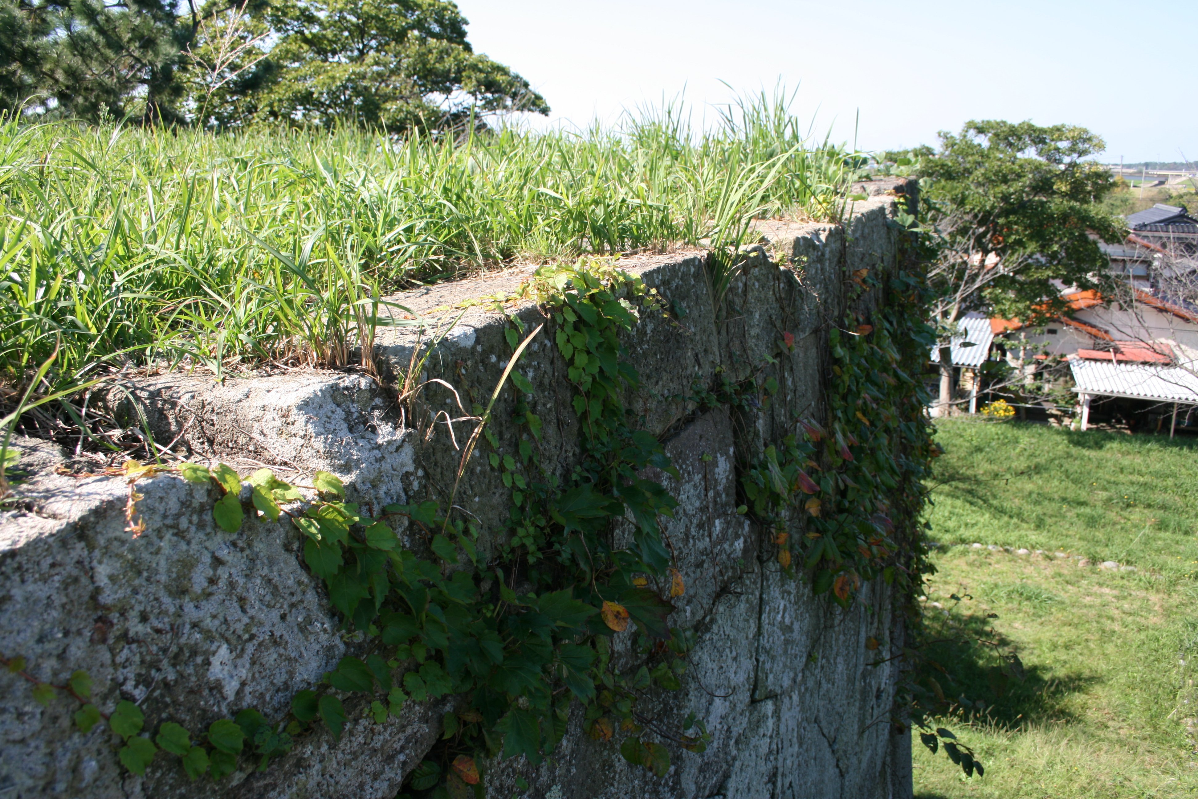 | 天守台の上部は草木が生えています |