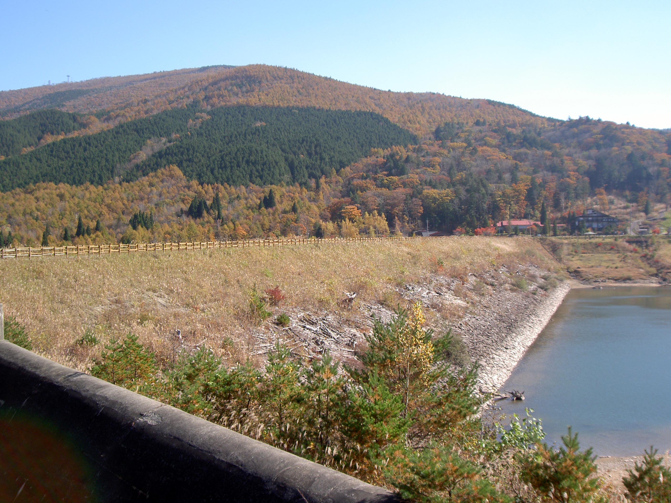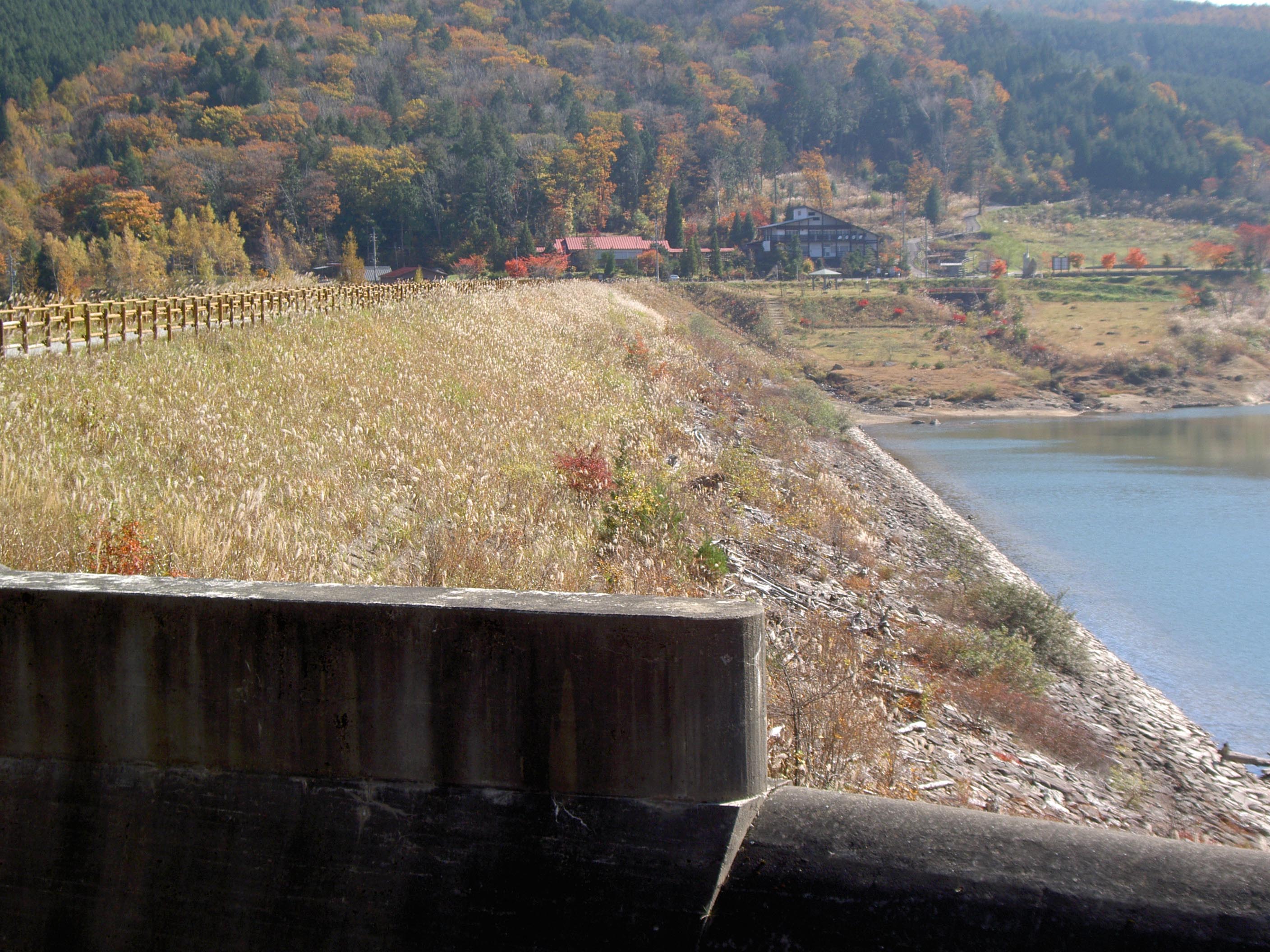 | 左岸上流から堤体を見る |