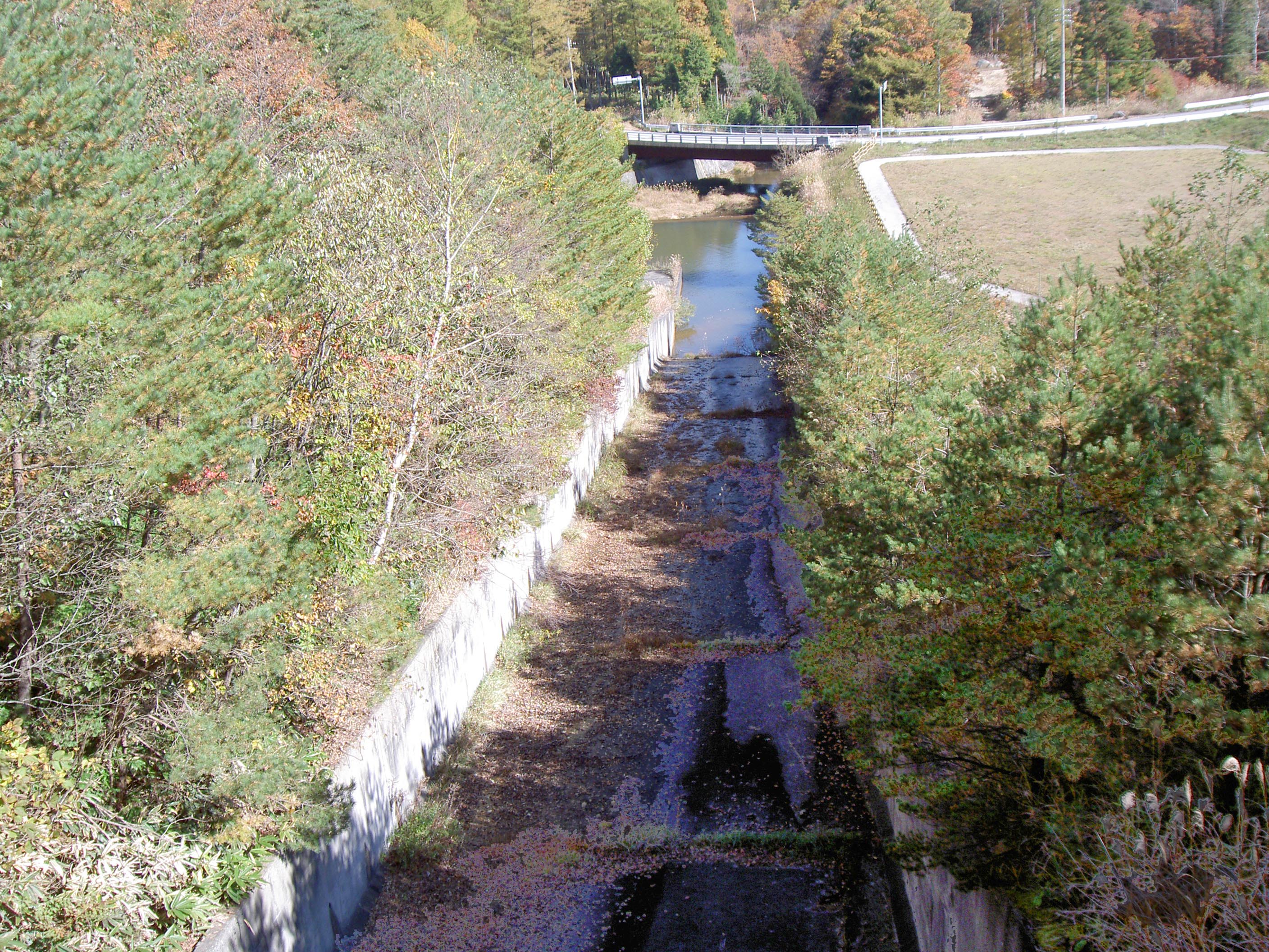 | 上流から洪水吐と導流部を見る |