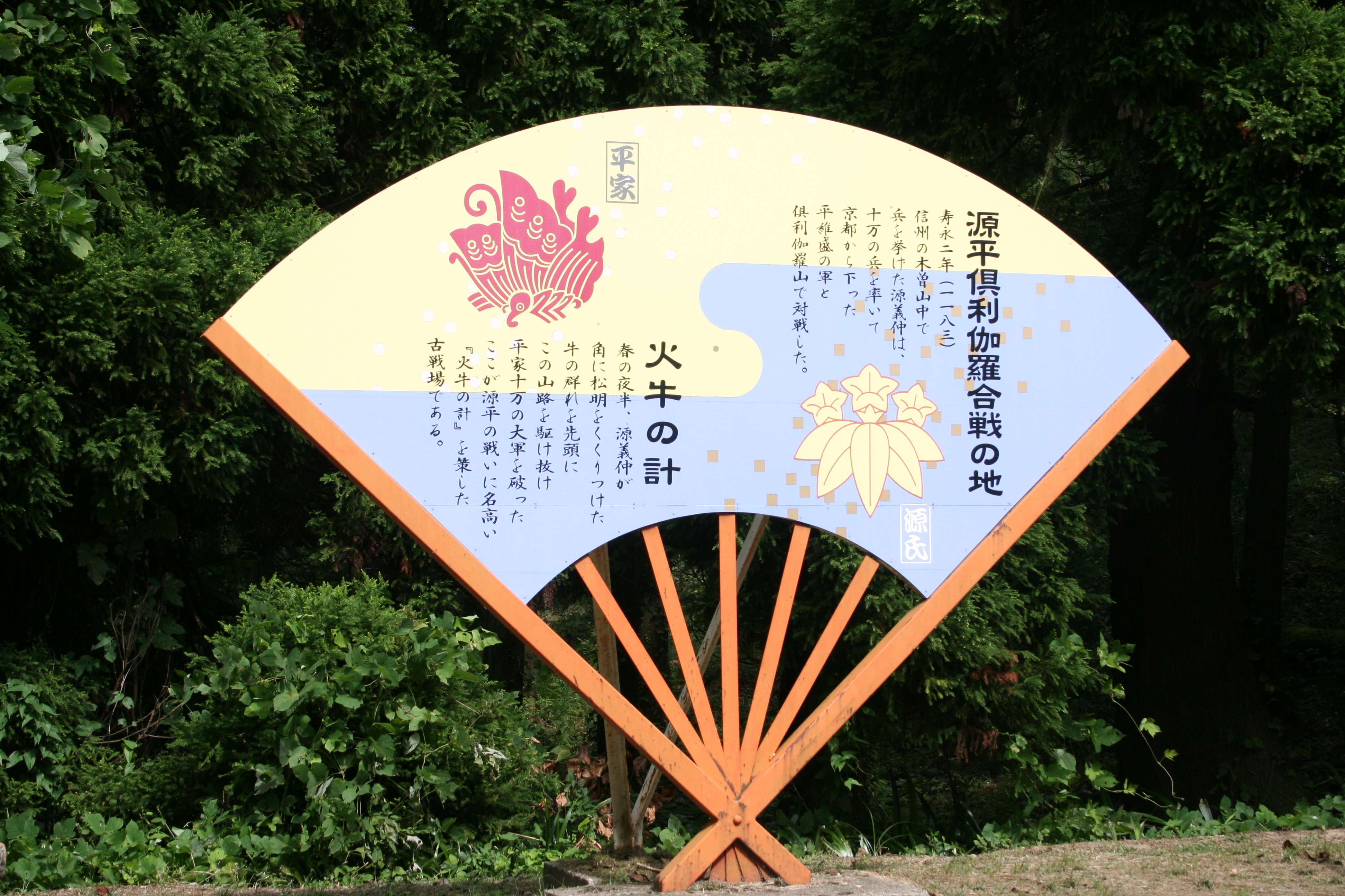 この地の近くには、平家軍が陣を構えたとされる源氏ヶ峰城があります。この城は戦国期にも佐々成政が改修し利用したといわれています。