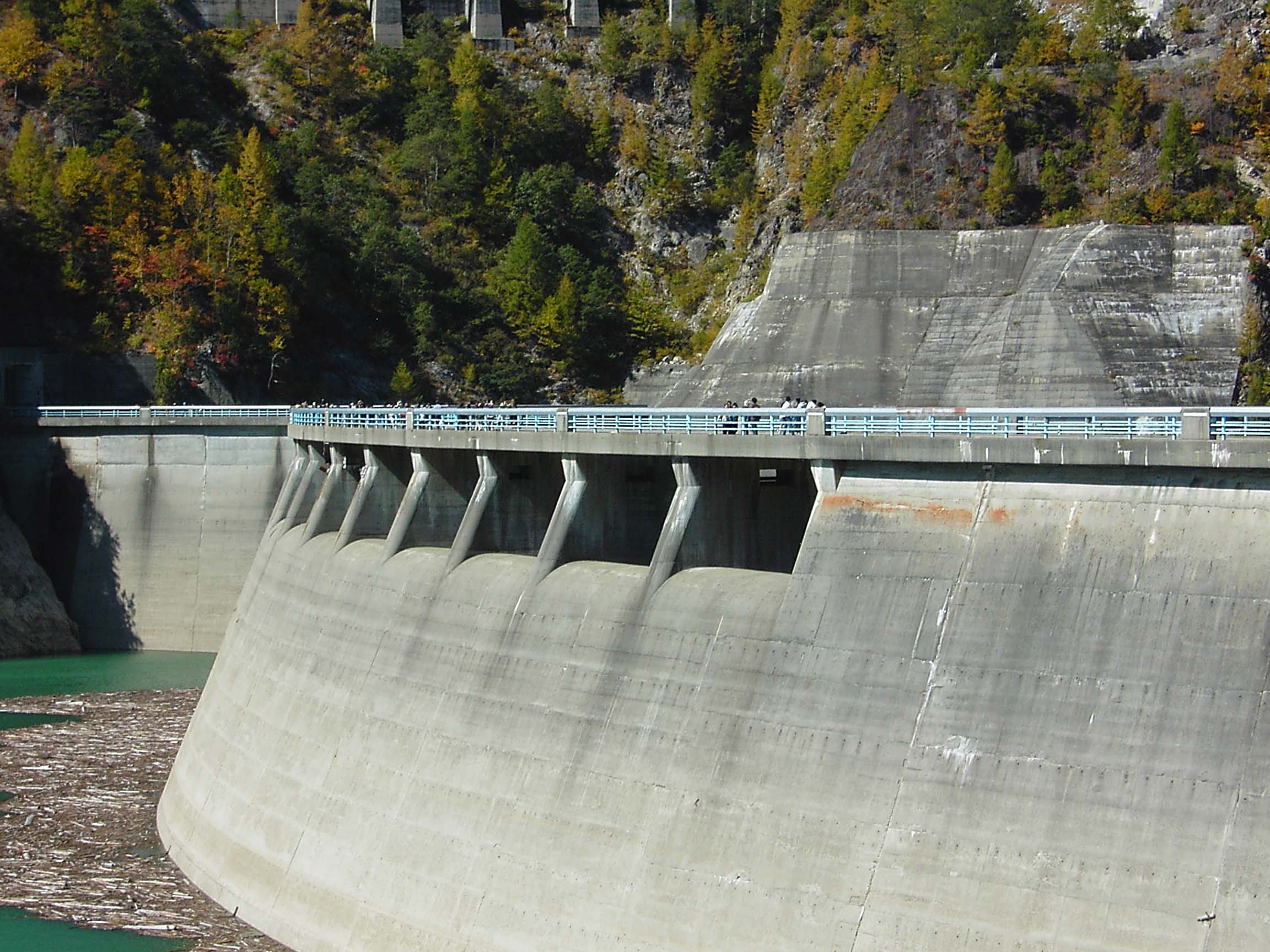 アーチ式コンクリートダムとしては、堤頂長492m、堤体積1,582,000m3とも日本一です。