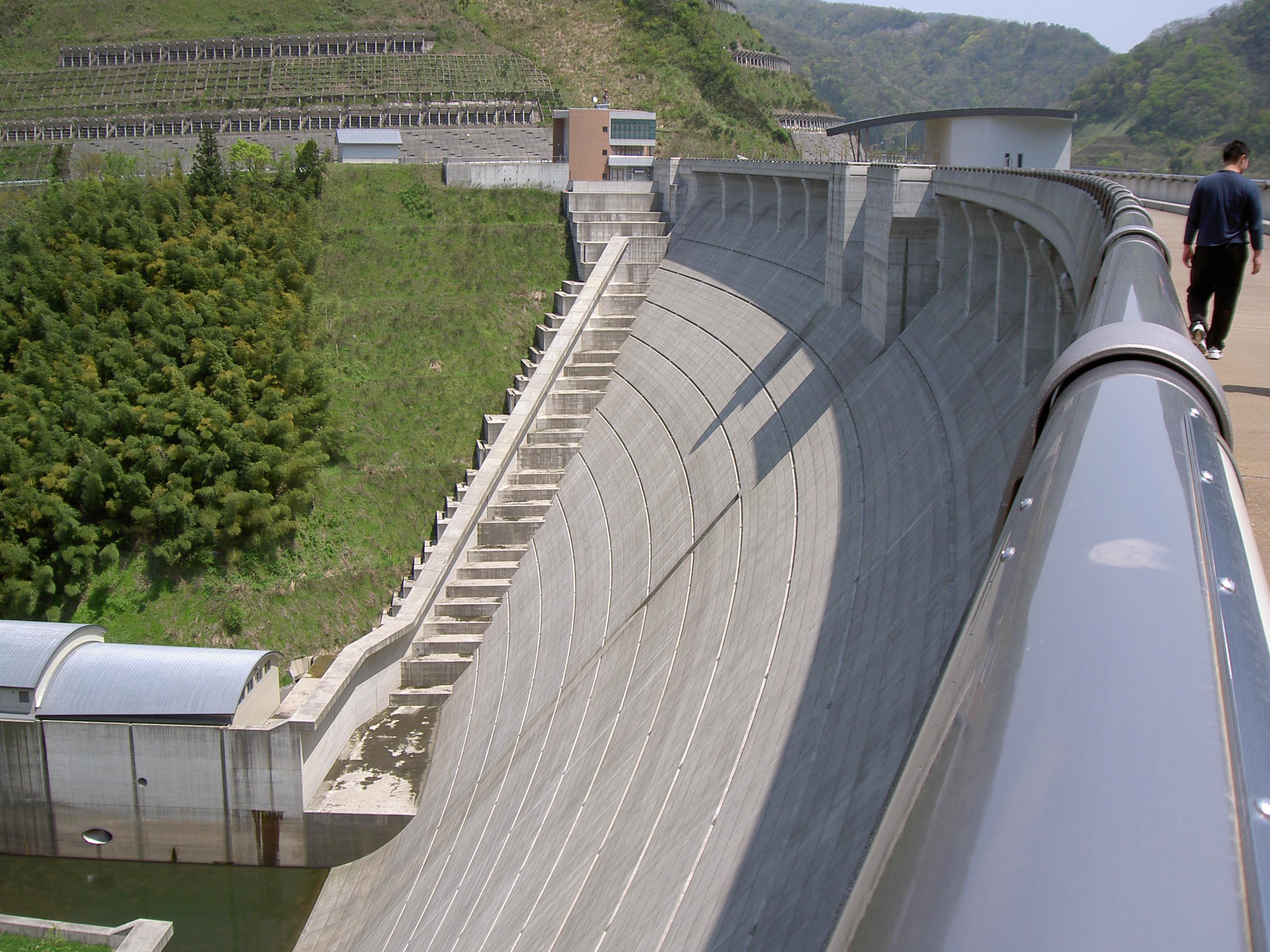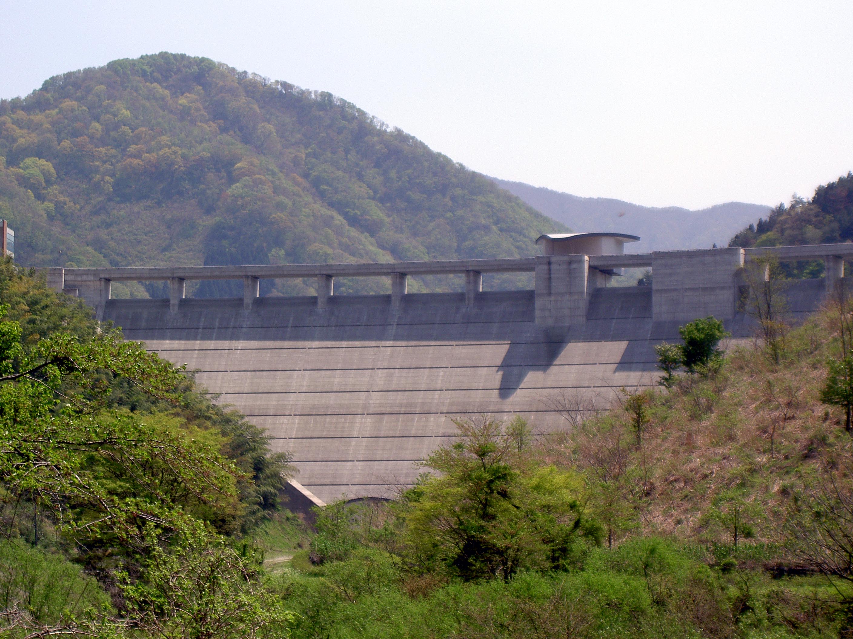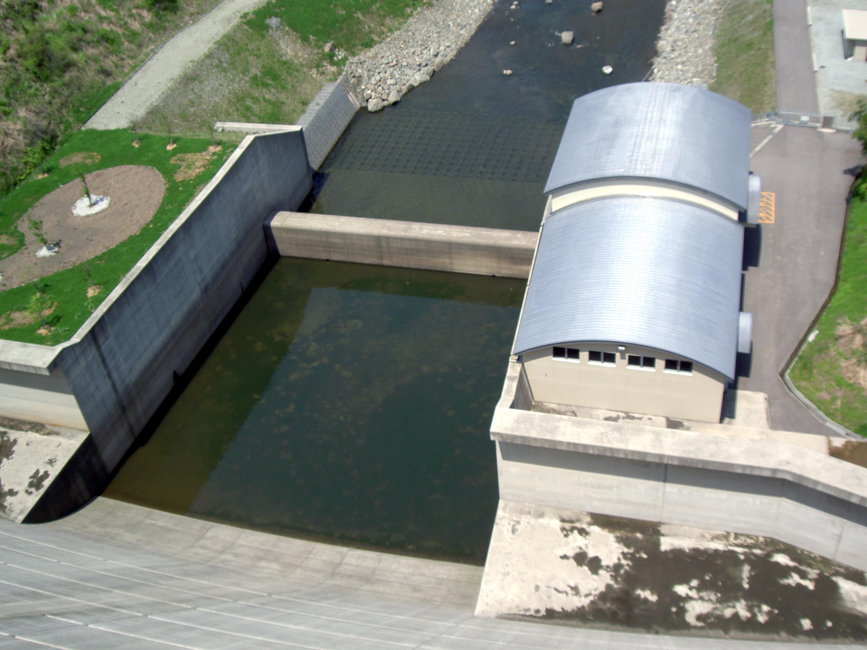 | 天端から減勢工と副ダムと発電所 |