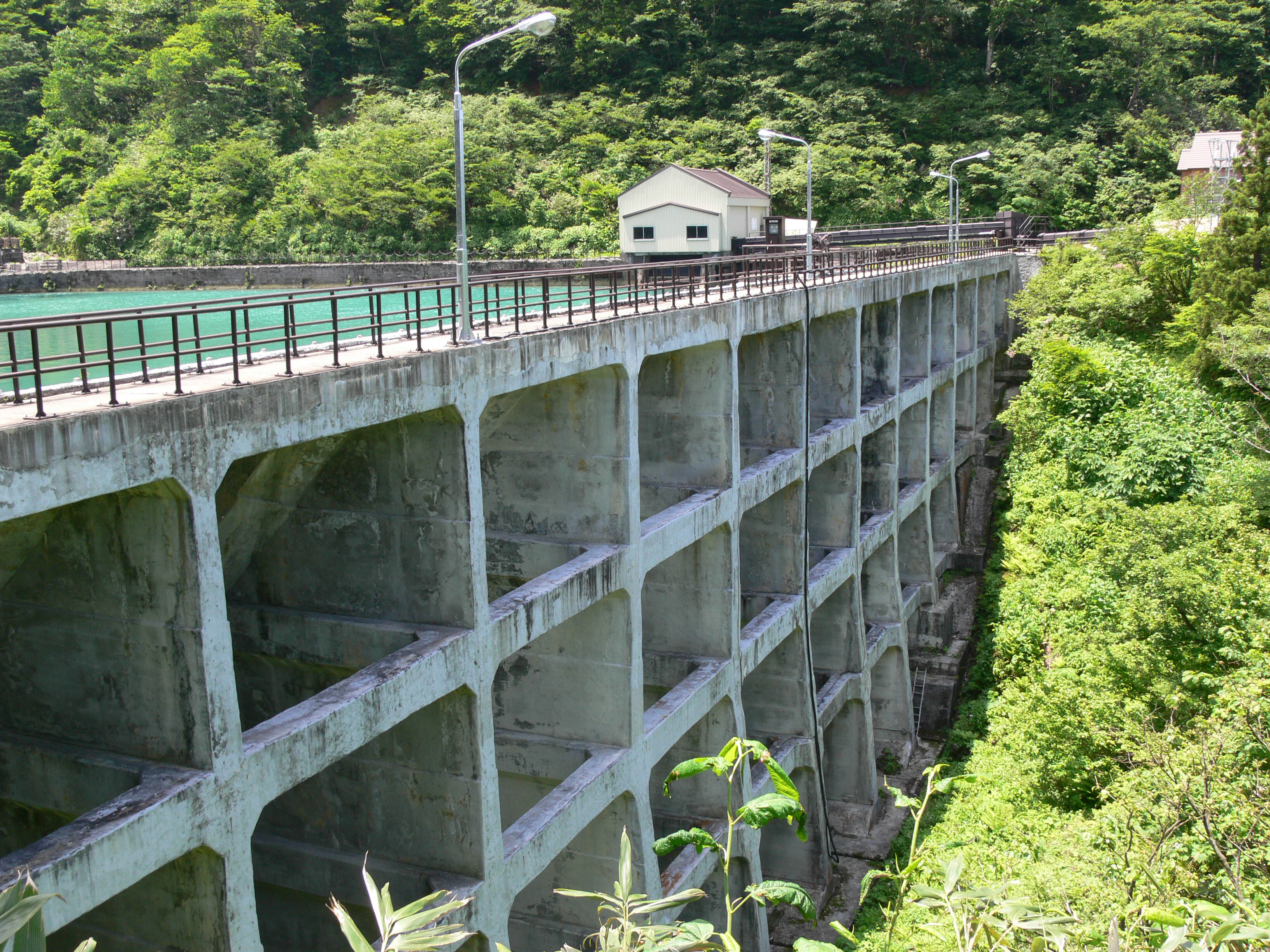 ダム湖とバットレス堤体 堤体直下へは階段で降りられそうですが・・・・
