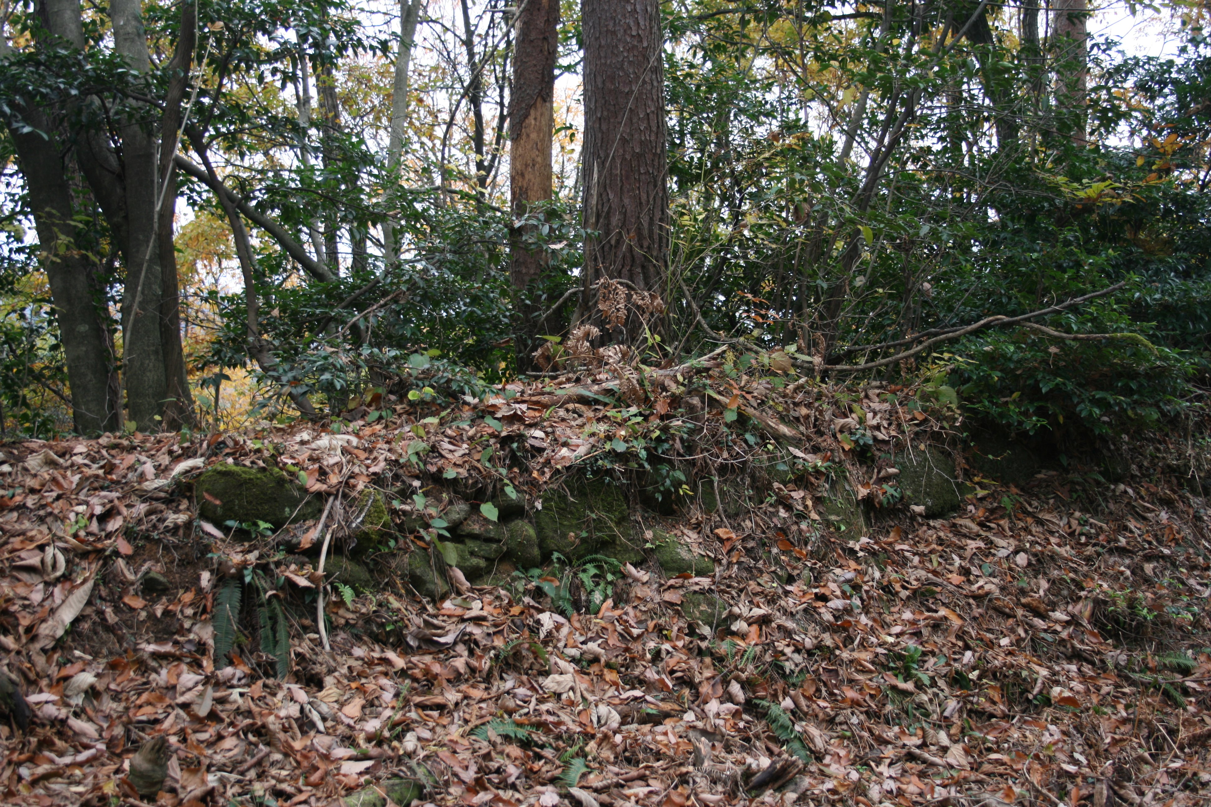 | 二の丸の周囲には土塁と一部は石積で囲まれています |