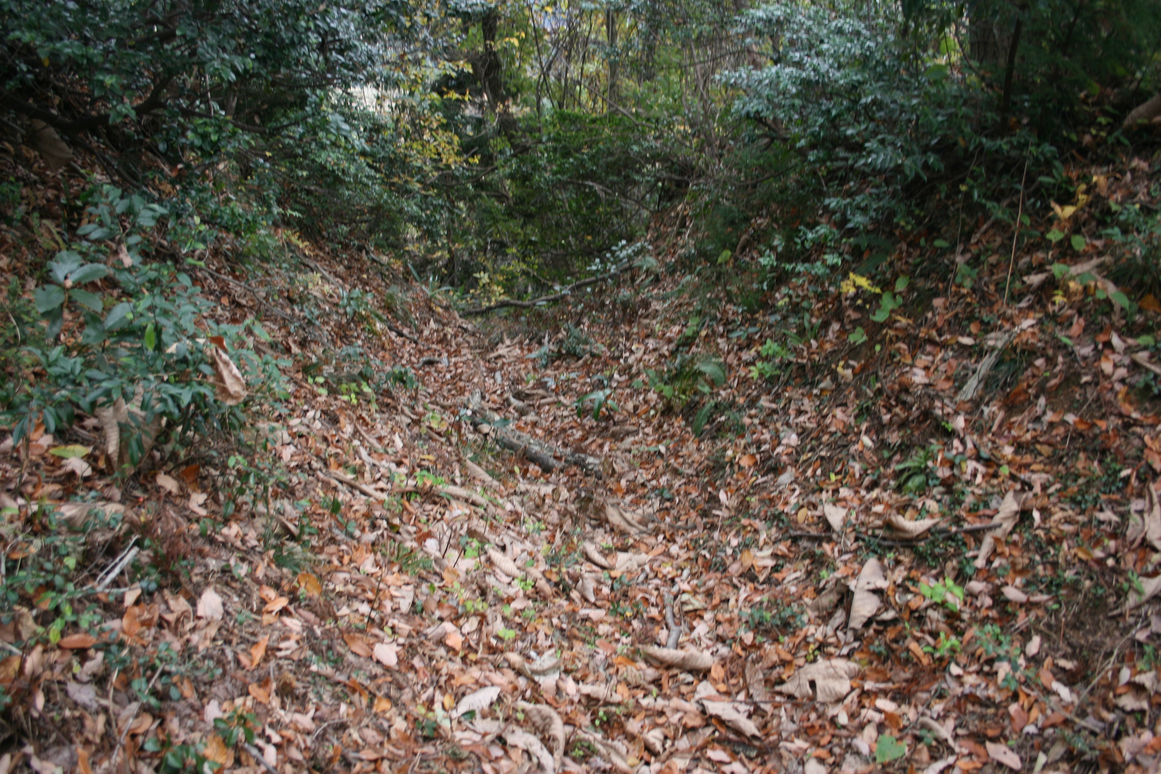 | 搦手道の途中に堀切がありました |